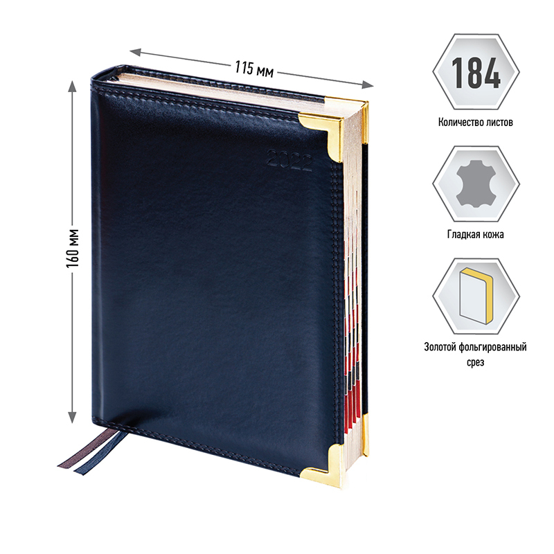 Ежедневник датированный 2022г., А6, 184л., кожа, Delucci, гладкая кожа, зол. срез, черный