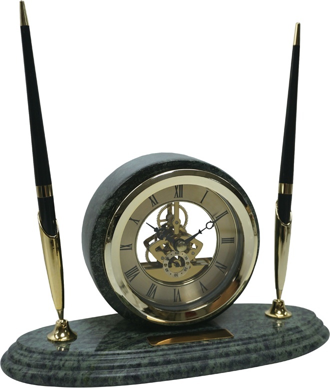 Органайзер настольный Delucci, для двух ручек, с часами, MBm_00011, зеленый