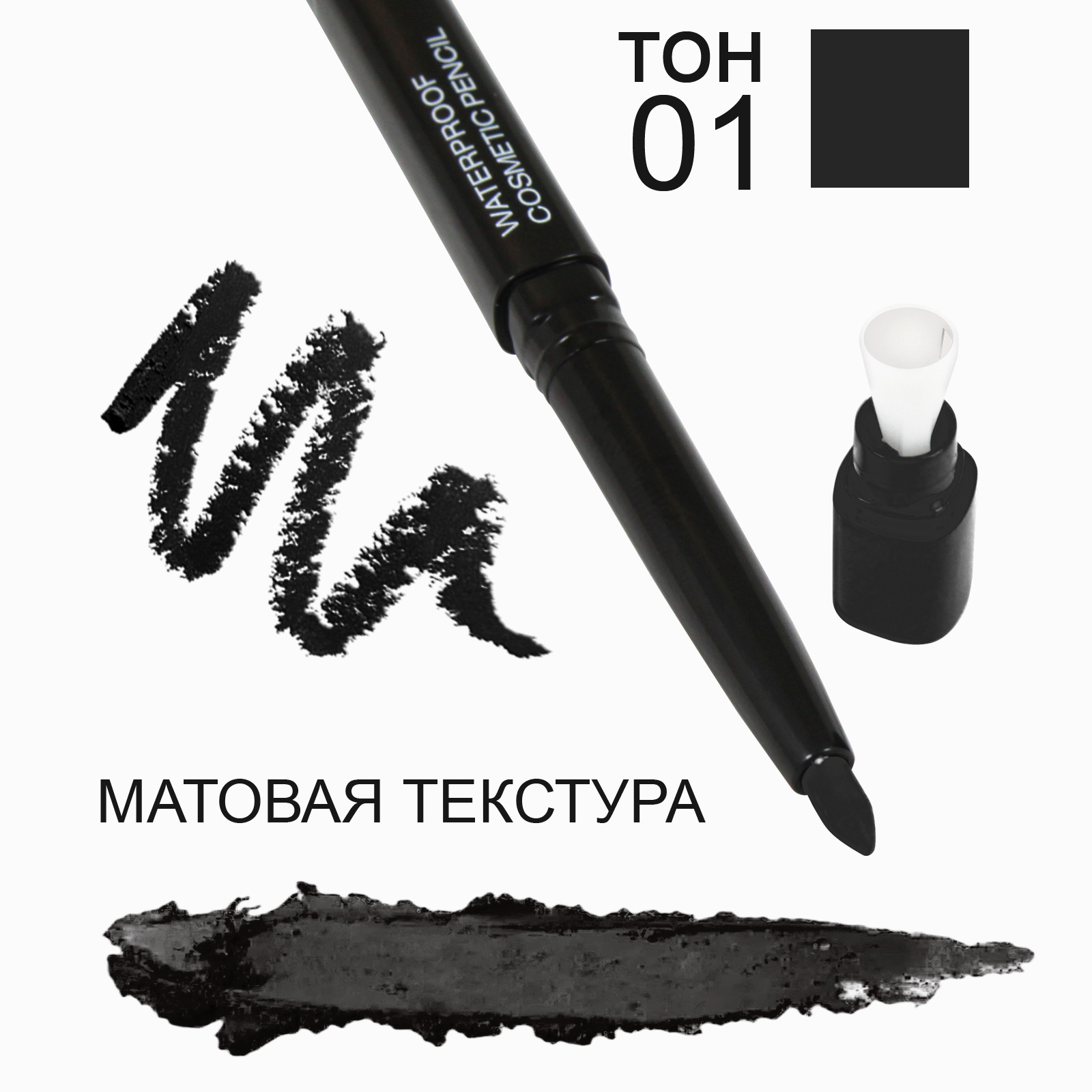 DEMINI Карандаш для глаз автоматический с точилкой, №001 Черный кашемир (матовый)