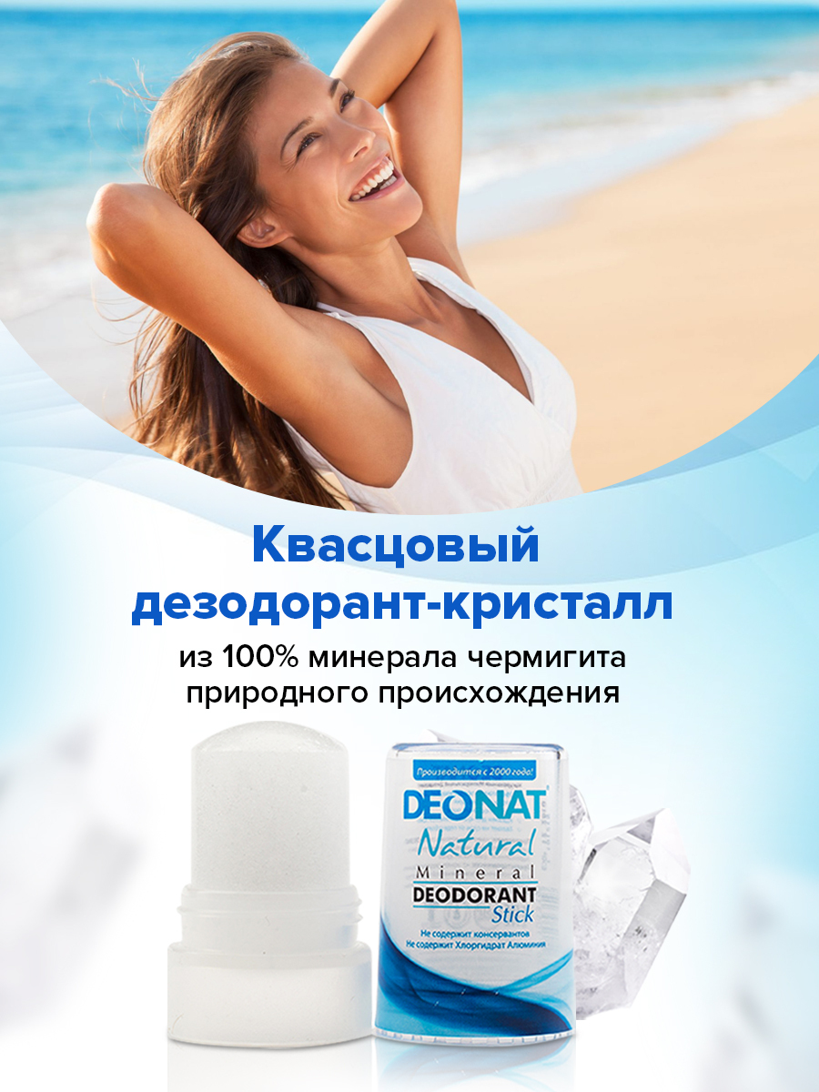 DeoNat - дезодорант кристалл - 100% натуральный минеральный для мужчин и женщин ДеоНат 40 г / Стик без добавок