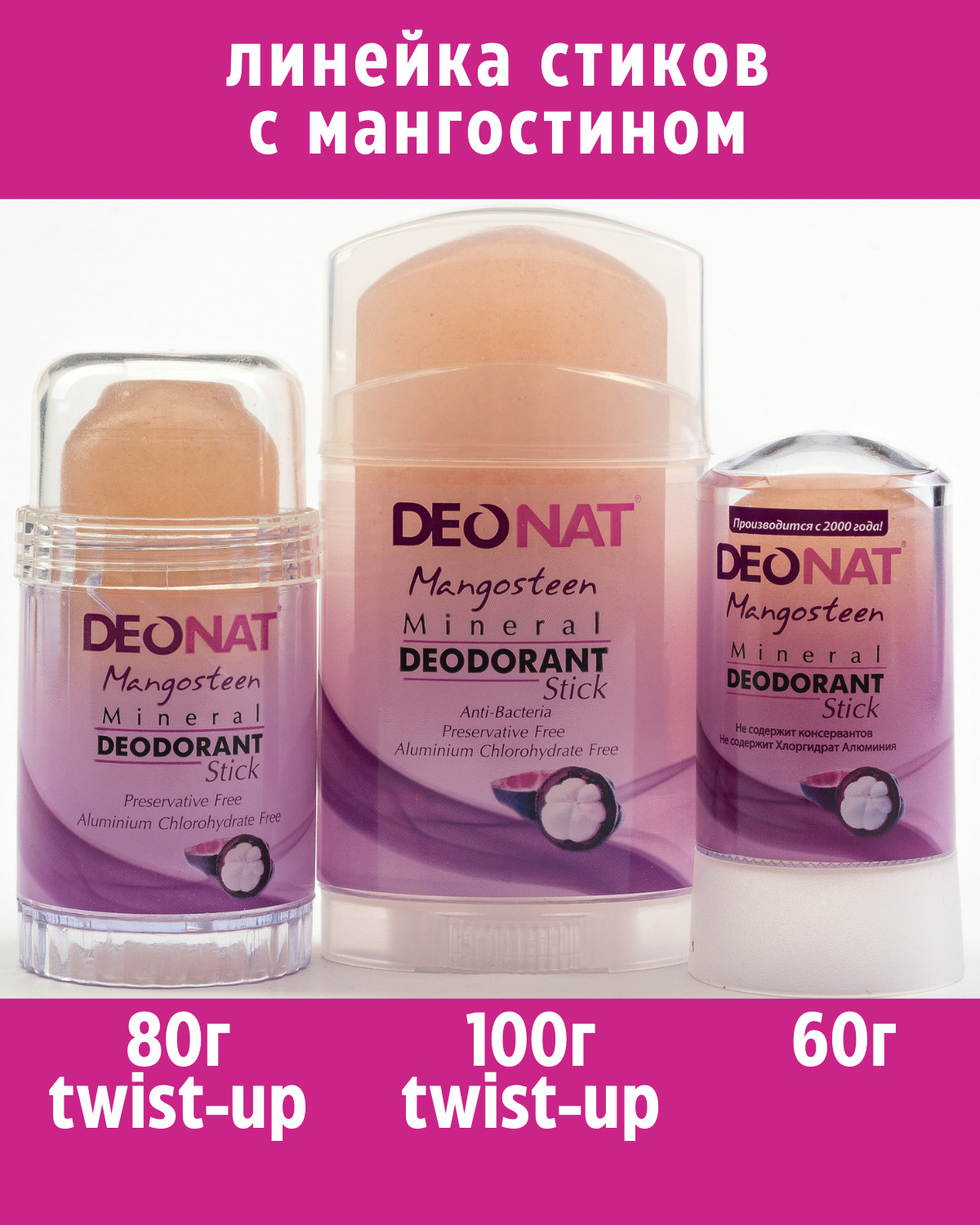 "ДеоНат" Дезодорант-Кристалл с экстрактом ПАПАЙИ, стик 60 гр
