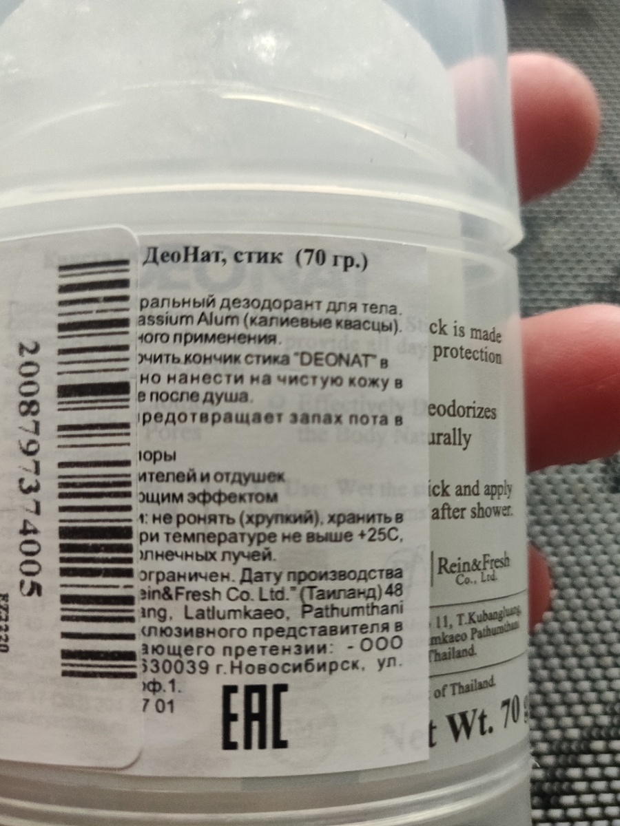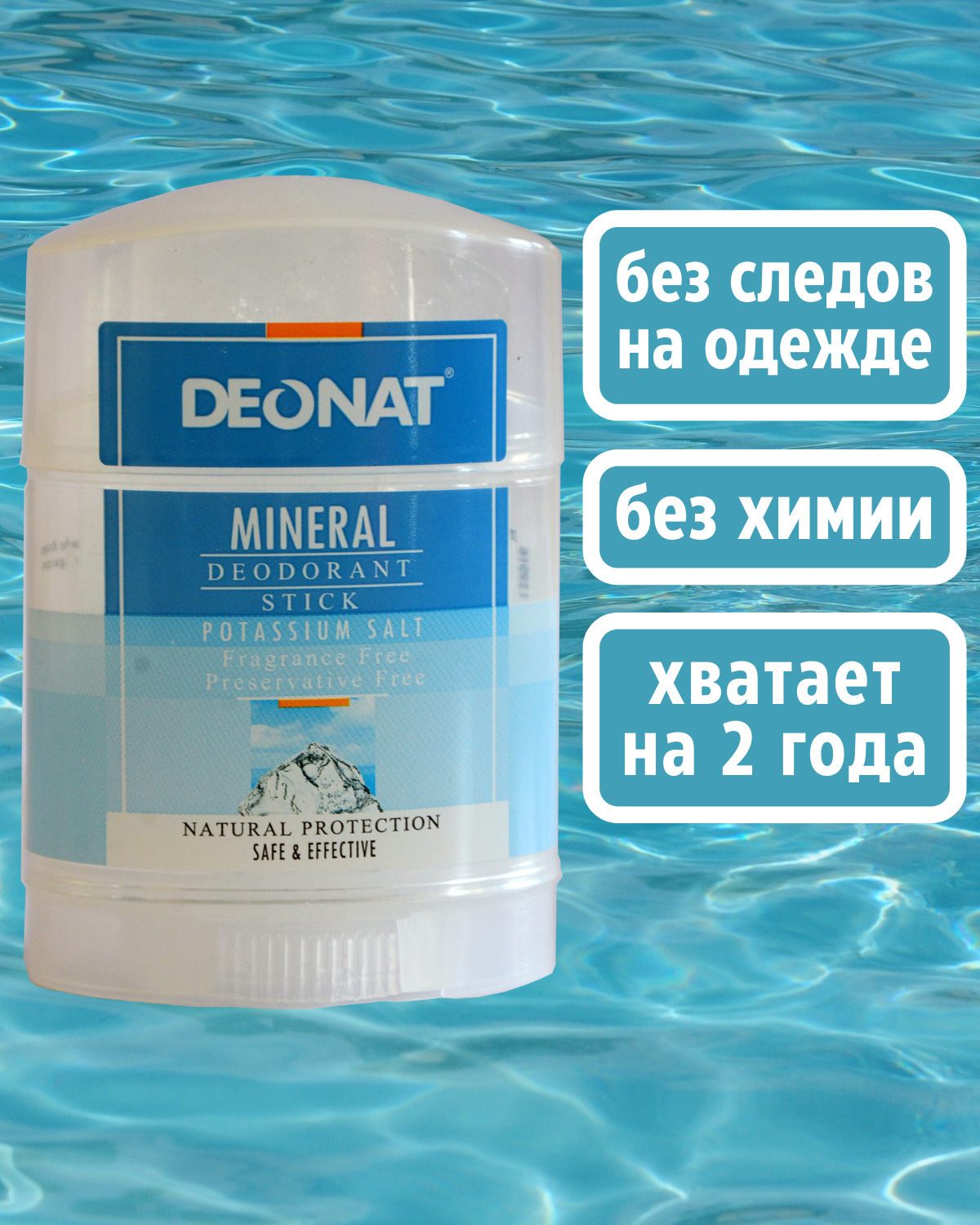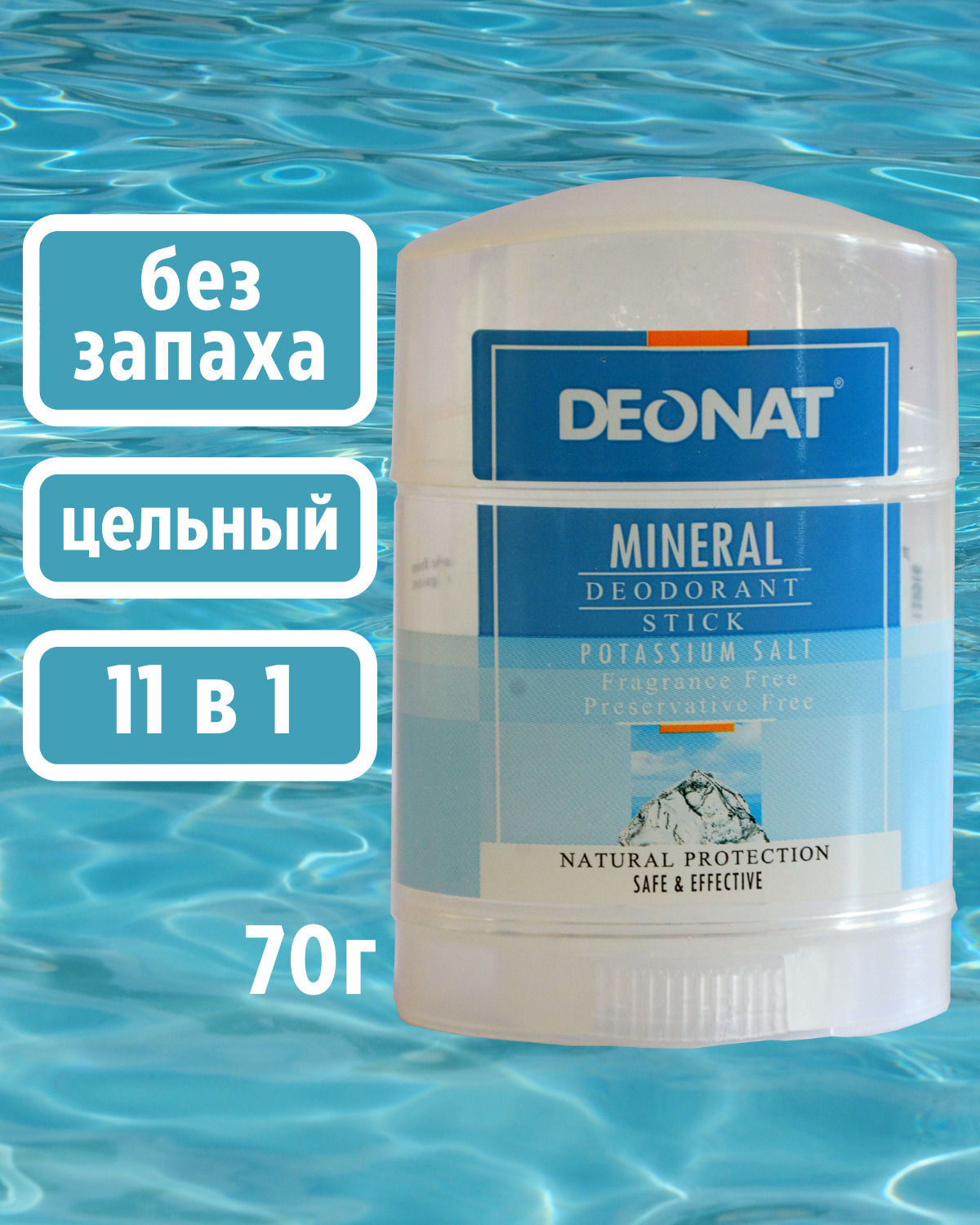 DeoNat. Натуральный минеральный дезодорант-кристалл цельный 70г