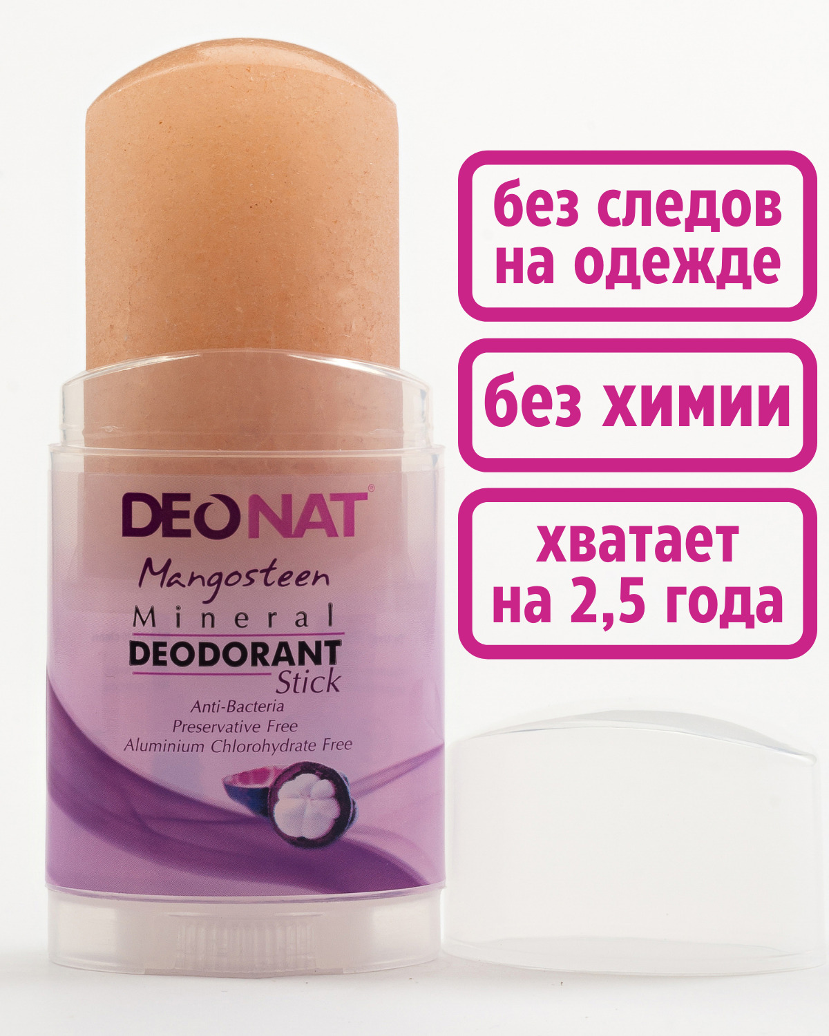 Дезодорант-кристалл ДеоНат с соком мангостина, розовый стик, вывинчивающийся (twist-up)