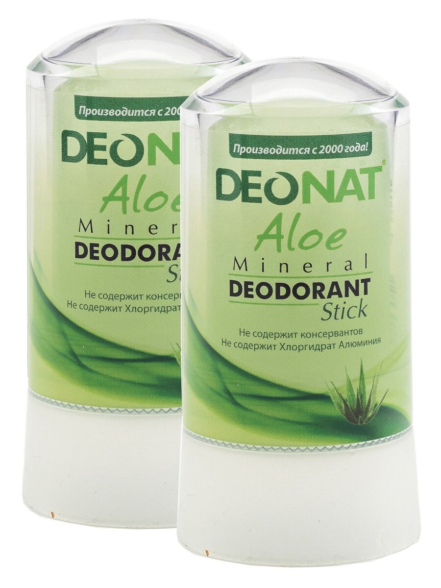ДеоНат Дезодорант-кристалл с соком Алоэ, КОМПЛЕКТ из 2 шт. по 40 гр.