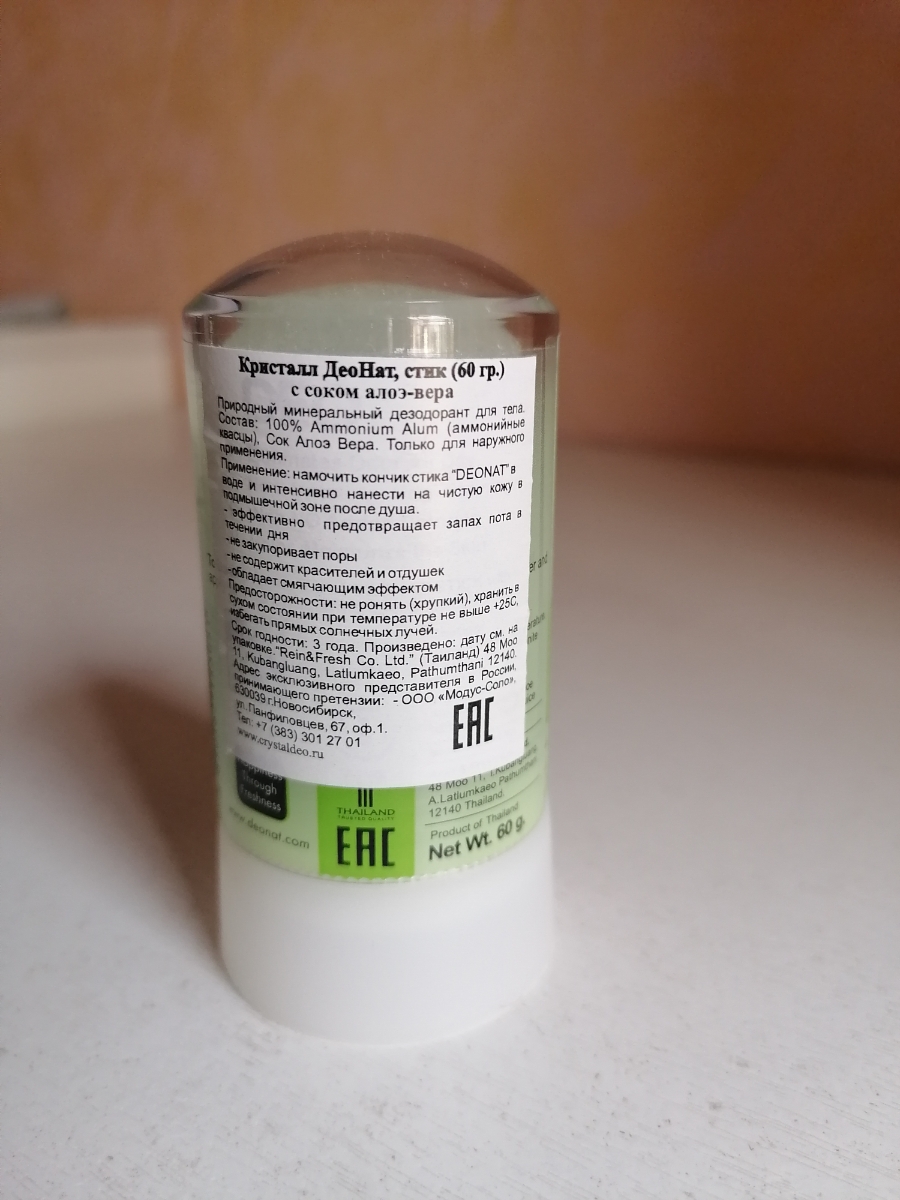 Кристалл - 100 % натуральный минеральный дезодорант, стик с соком алоэ, 60 г