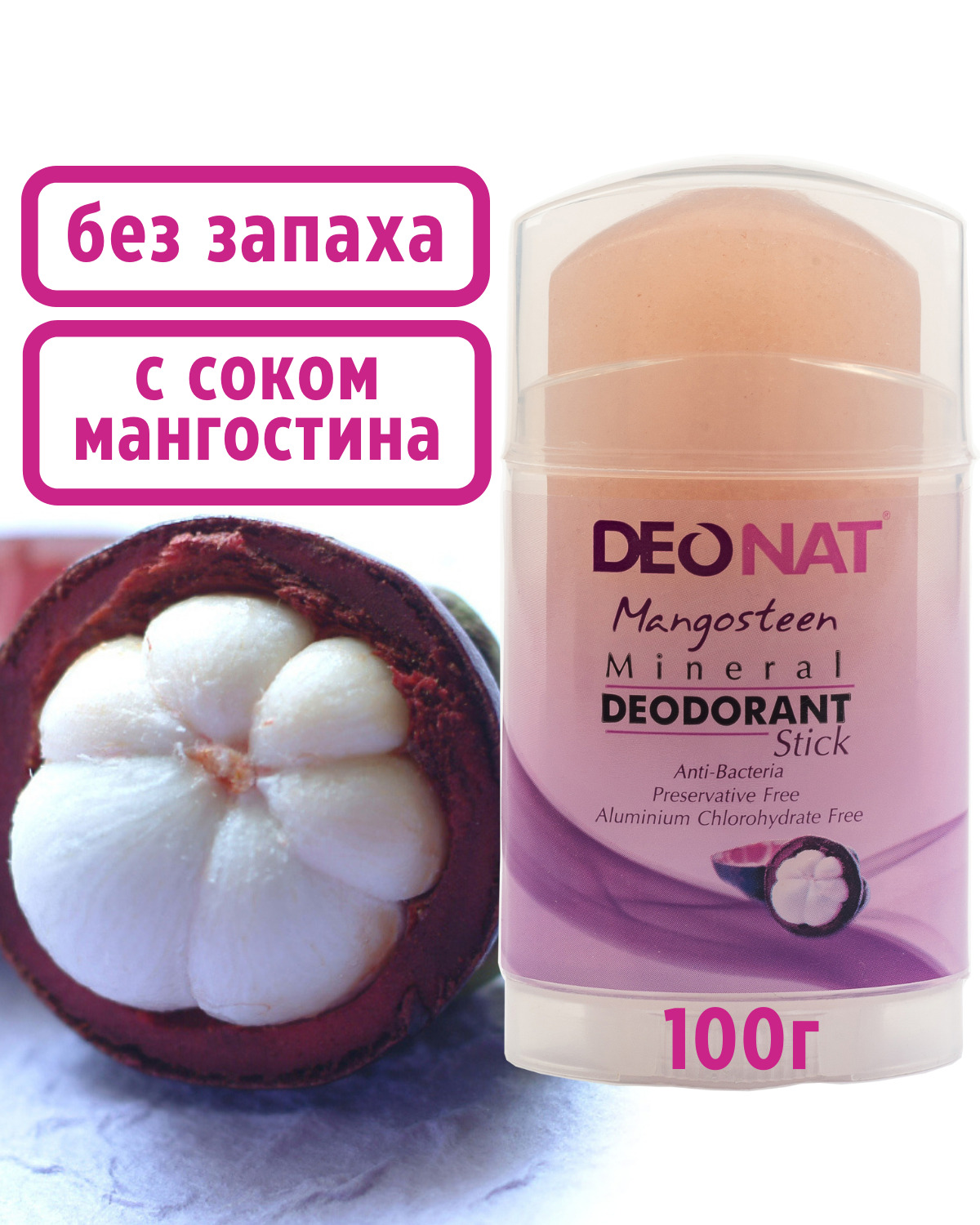 ДеоНат Дезодорант-Кристалл с соком МАНГОСТИНА, стик 60 гр