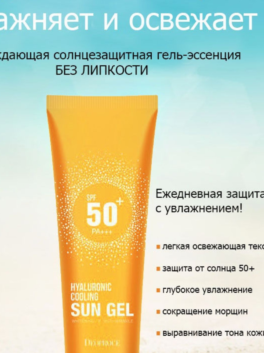 Deoproce Гель для лица увлажняющий солнцезащитный Hyaluronic Cooling Sun Gel SPF 50+ PA+++, 50г