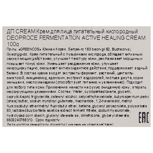 Deoproce Fermentation Active Healing Cream Кислородный крем для лица против морщин