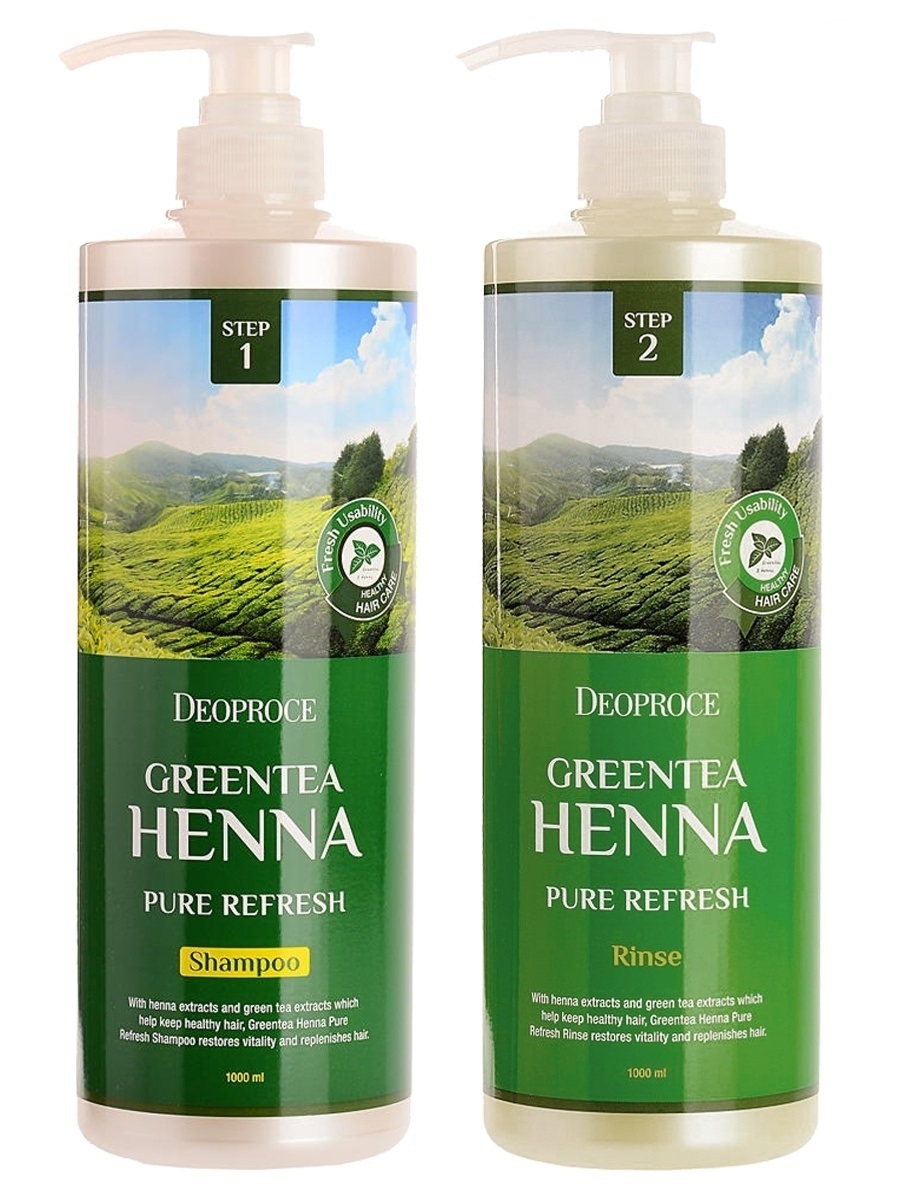 Deoproce Набор Шампунь + Бальзам для волос с зеленым чаем и хной, 1000 мл + 1000 мл