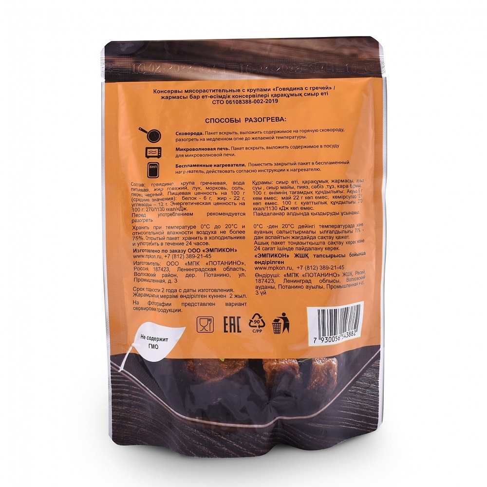 Готовое блюдо "Говядина с гречей" 250 гр (Деревня Потанино)