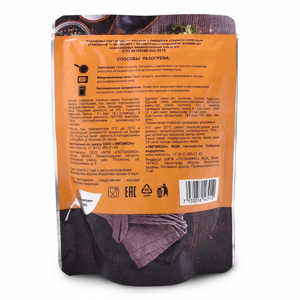 Готовое блюдо "Говядина с овощами" 250 гр (Деревня Потанино) 4шт*250г, 1кг