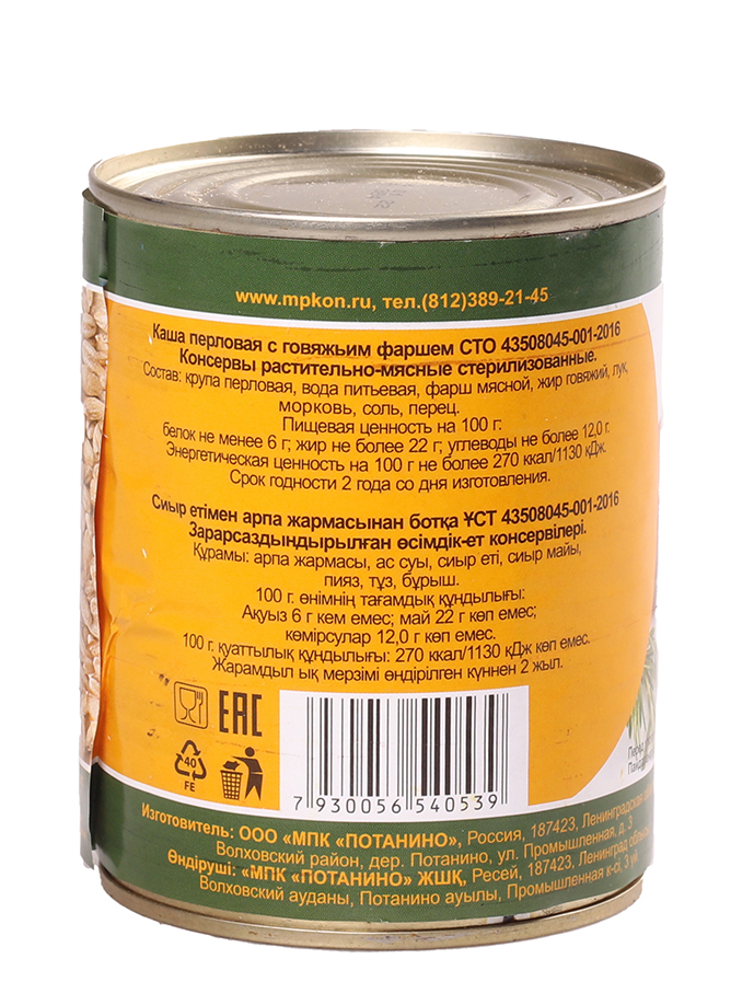 Каша перловая с говядиной " Сельская " СТО 340гр. (4шт)