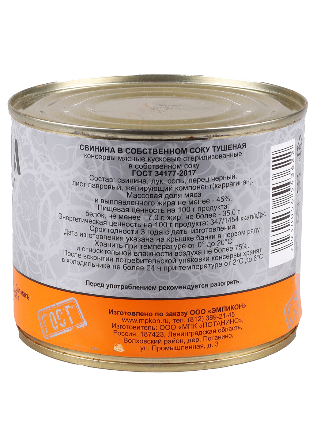 Говяжьи щёчки в С/С тушеный Премиум "Деревня Потанино" СТО ж/б 325гр. (2шт.)