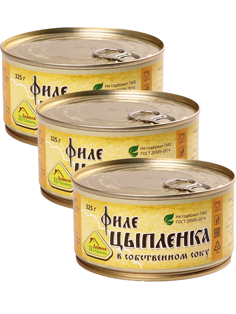 Филе цыпленка в собственном соку "Деревня Потанино" ГОСТ ж/б (3 шт.)