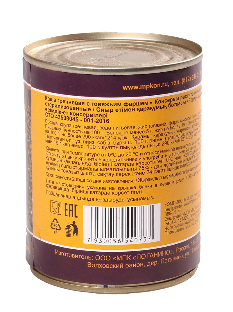 Каша гречневая с говядиной " Сельская " СТО (4 шт.)