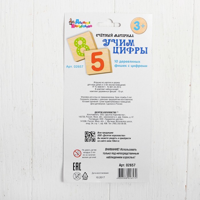 Набор развивающих деревянных фишек для детей "Учим цифры" европодвес