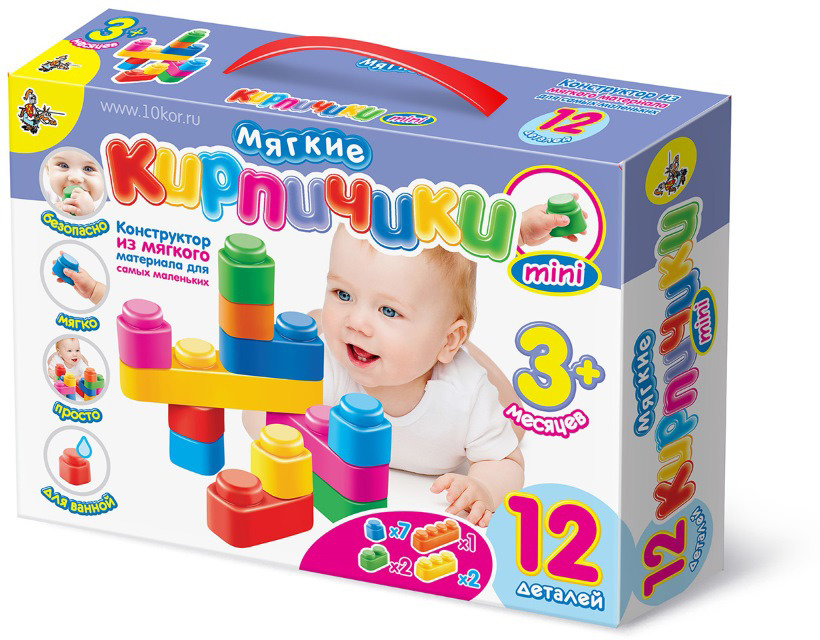 "Мягкие кирпичики", конструктор из мягкого материала для самых маленьких мини, 12 деталей