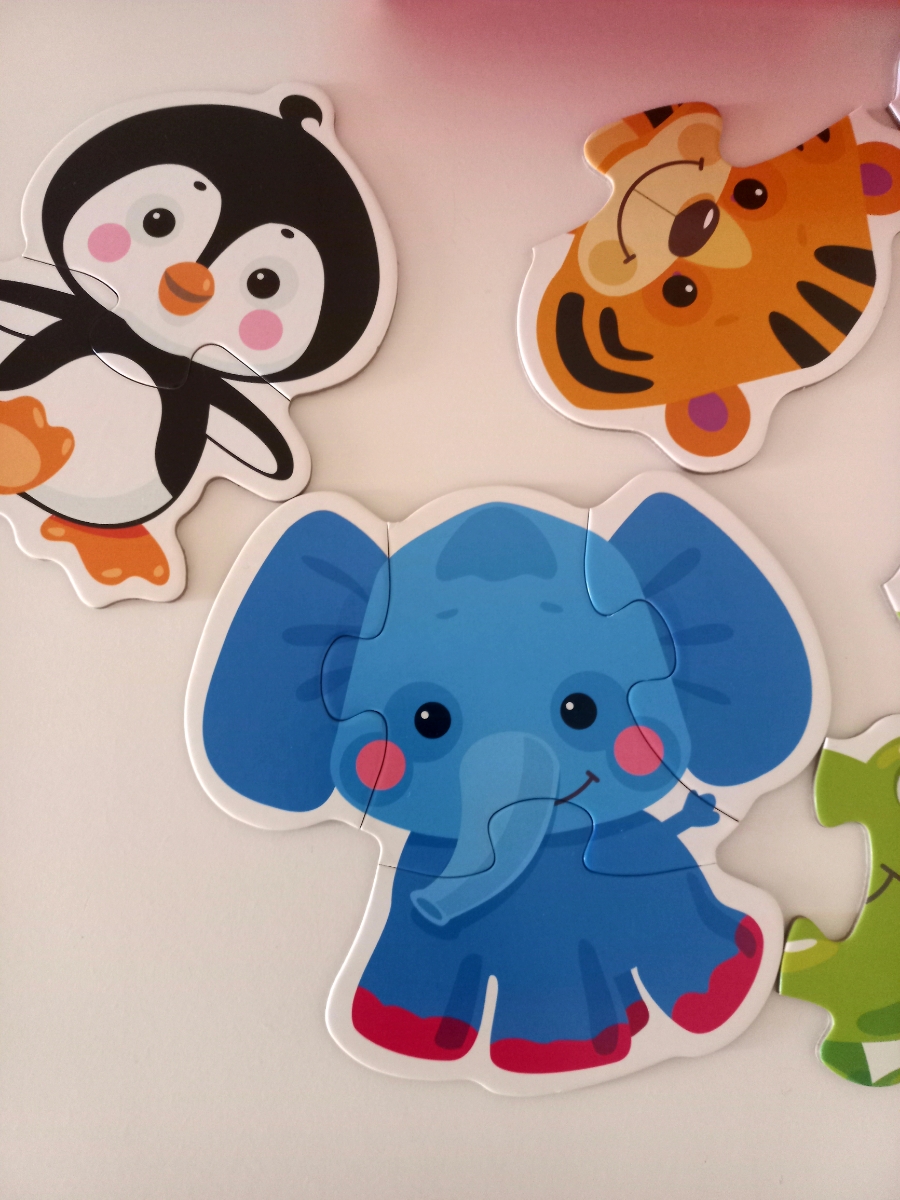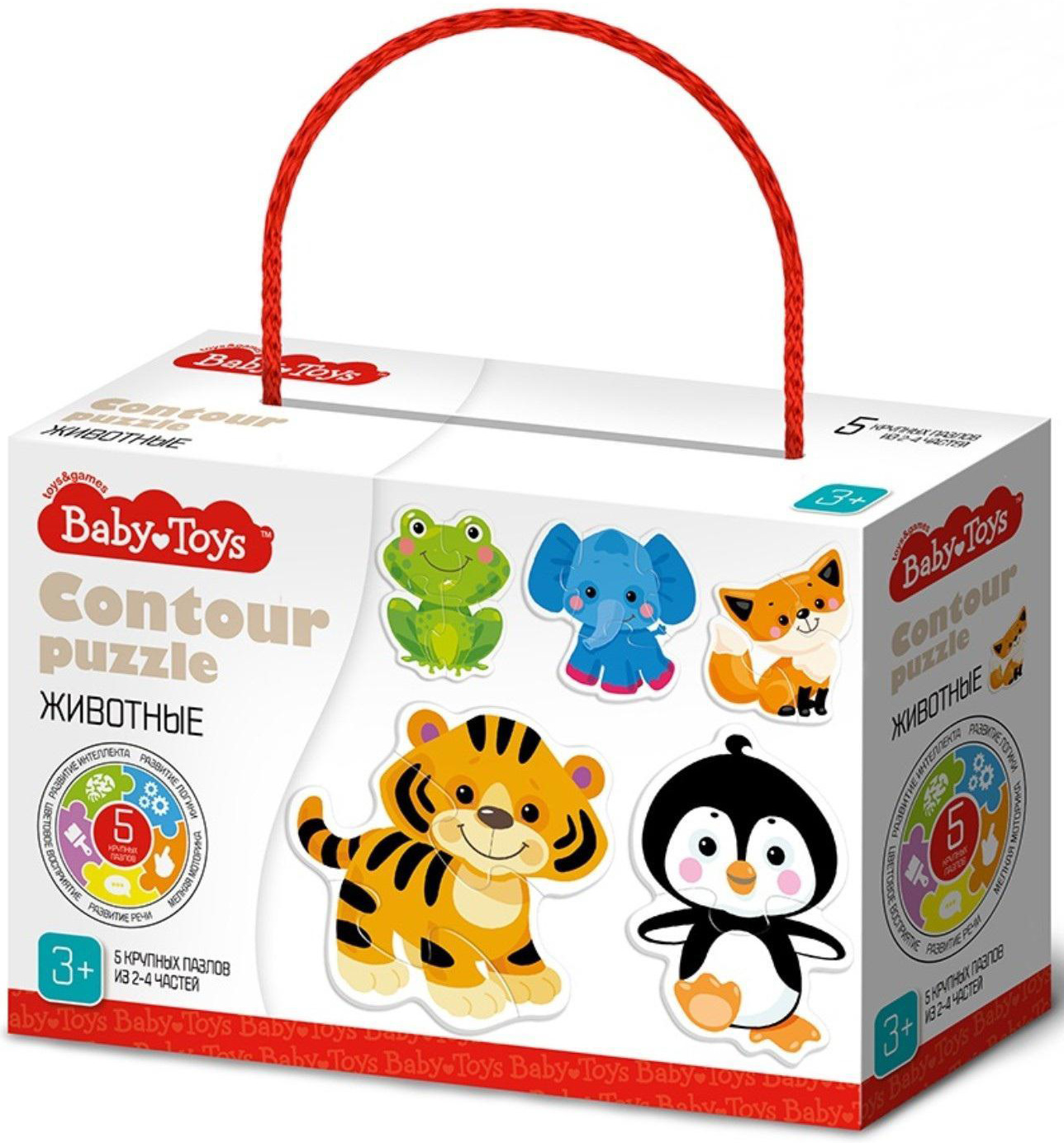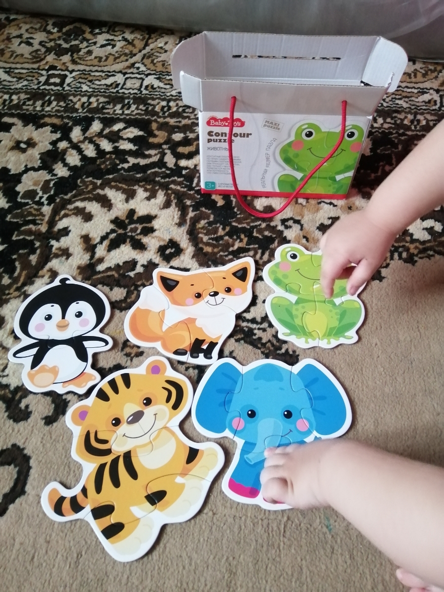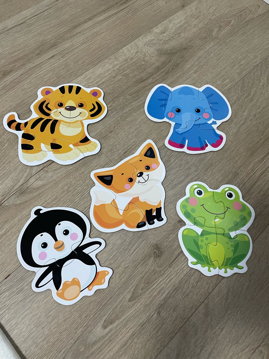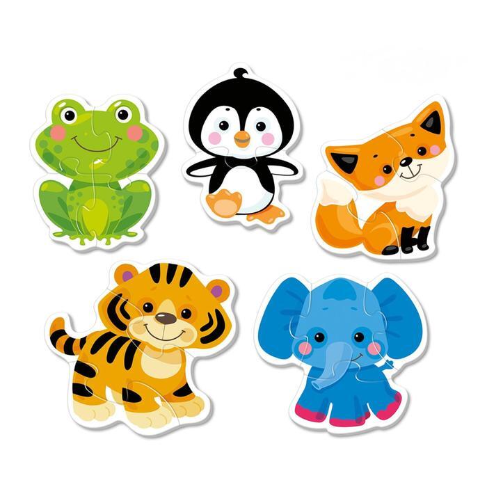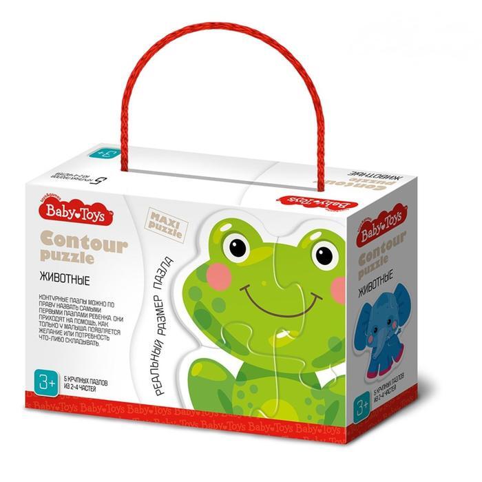 Развивающий контурный пазл "Животные", набор 5 крупных пазлов с большими деталями