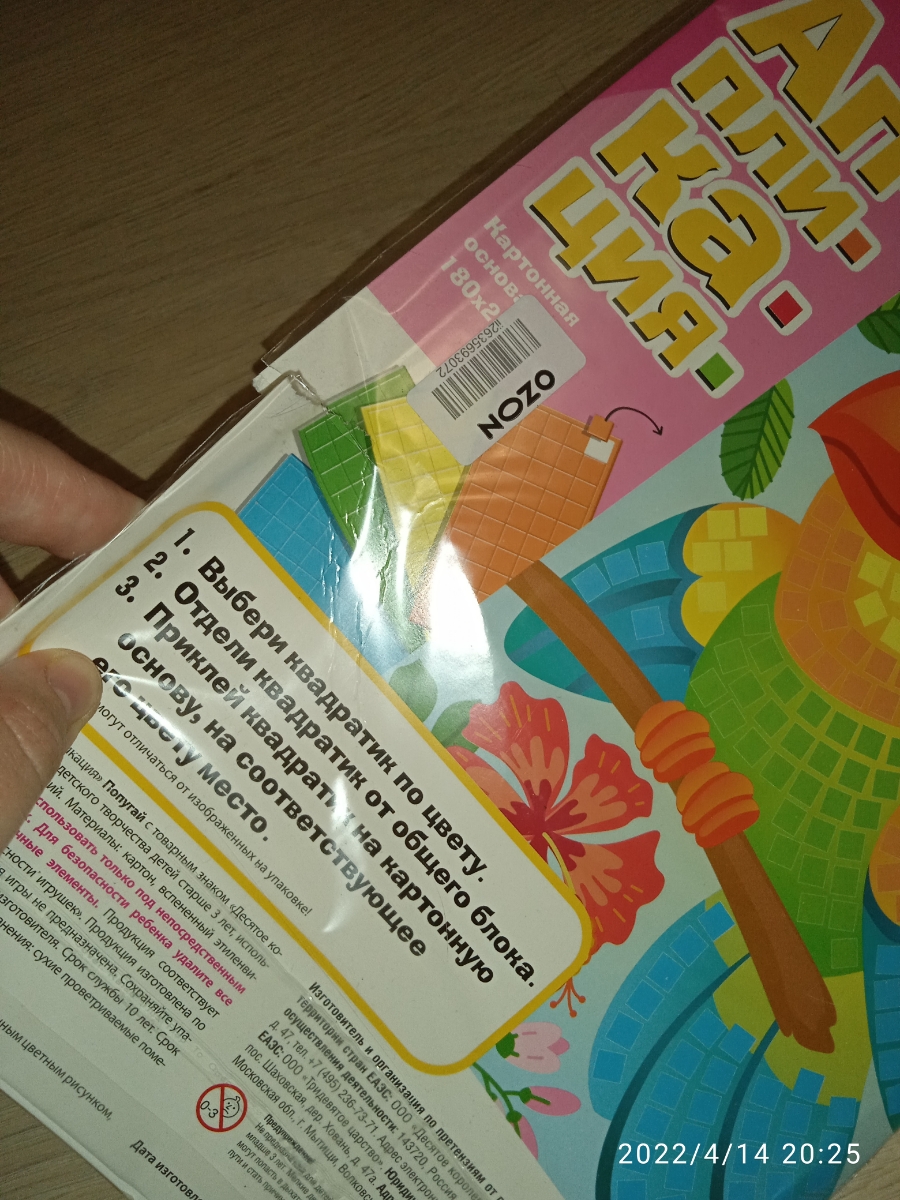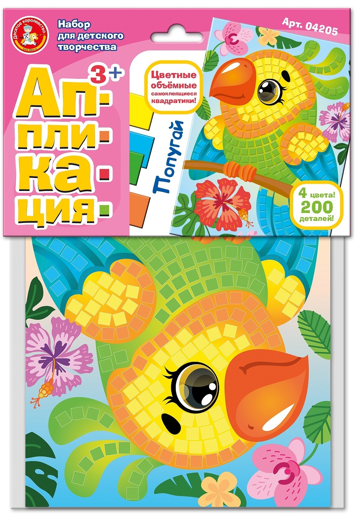 Аппликация для детей "Попугай" (детский набор для творчества-аппликации для малышей)