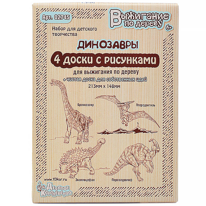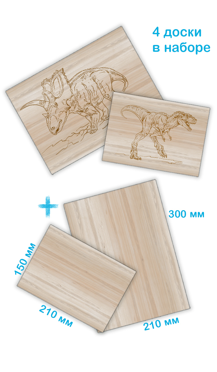 Доски для выжигания 5 шт "Брахиозавр, Птеродактиль, Эвоплоцефал, Паразауролоф" серия "Дин 02745