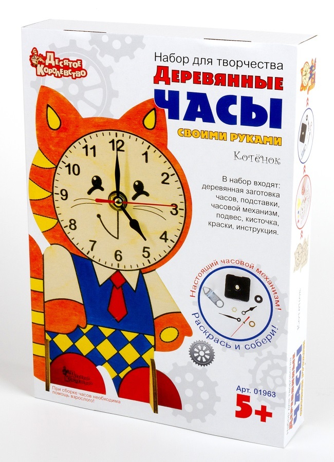 Набор для творчества. Часы деревянные своими руками (с красками). Котенок