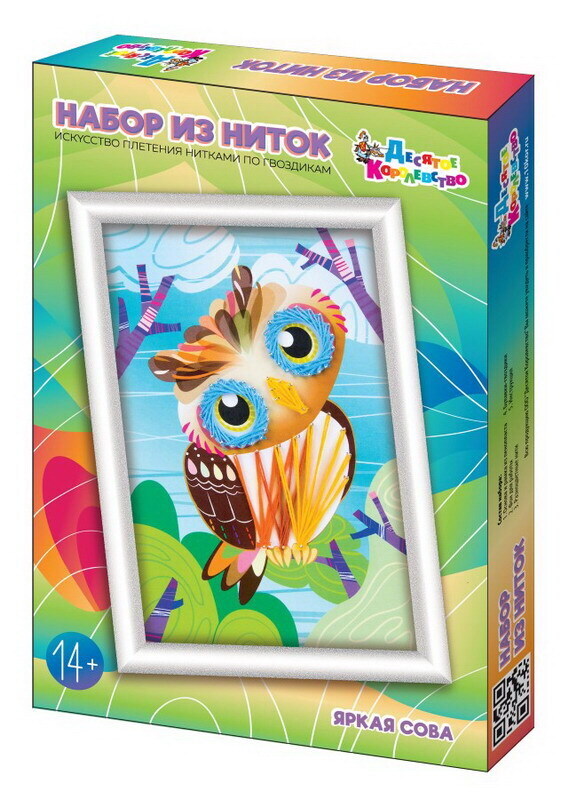 Набор для творчества. Плетение нитками по гвоздикам Яркая сова