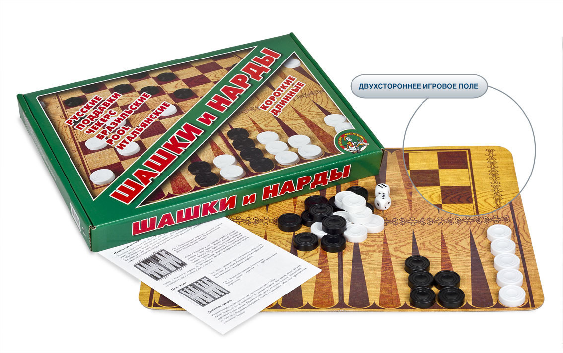 Настольные классические игры "Шашки и нарды" большие 2 в 1