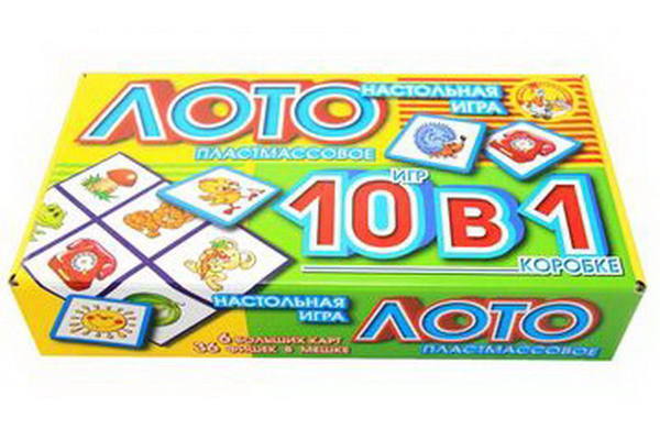Лото детское. 10 в одном (пластмассовое, большое)