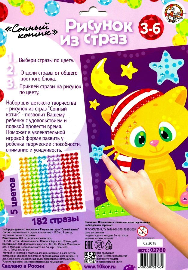 Рисунок из страз "Сонный котик" (Детский набор для творчества)