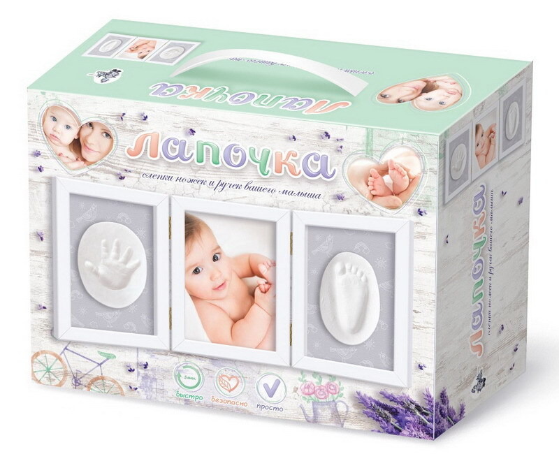 Набор для творчества. Лапочка. Слепки ножек и ручек вашего малыша (тройная рамка со стеклом)
