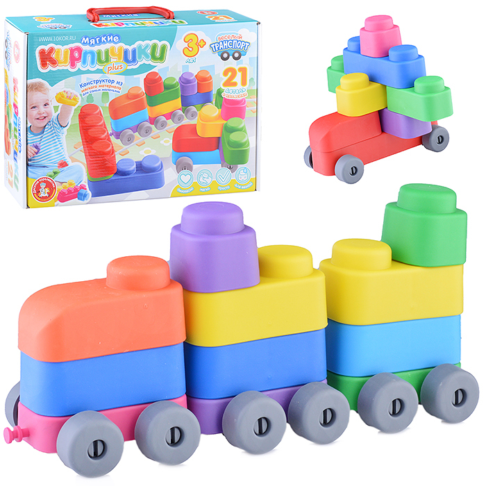 Конструктор мягкий "Мягкие кирпичики plus. Веселый транспорт" 21 дет+колесики
