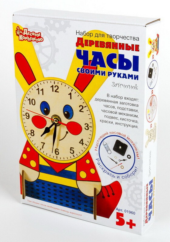 Набор для творчества. Часы деревянные своими руками (с красками). Зайчонок