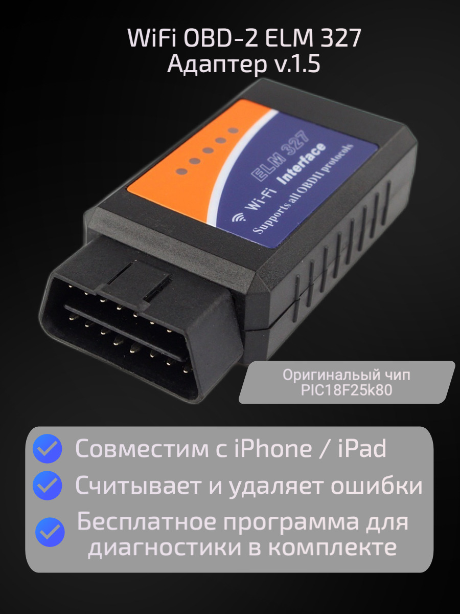 Сканер для диагностики автомобилей / Автосканер / DGMedia ELM327 OBD2 v1.5 WiFi на чипе PIC18F25K80