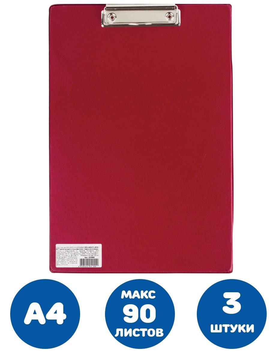Доска-планшет "Comfort" с прижимом А4 (230х350 мм), картон/ПВХ,РОССИЯ, БОРДОВАЯ (3 штуки)
