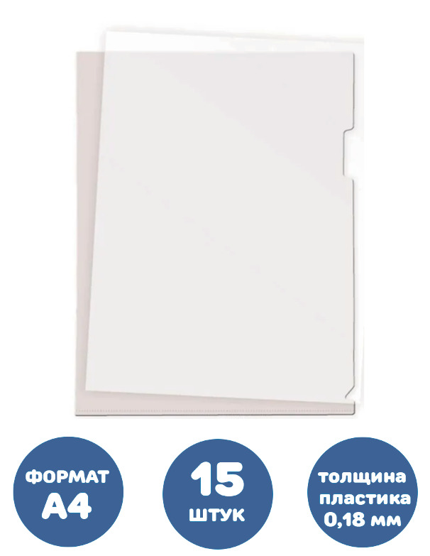 Папка уголок А4 прозр. плотн. 0,18мм бесцветная (15 штук)