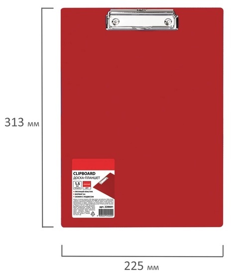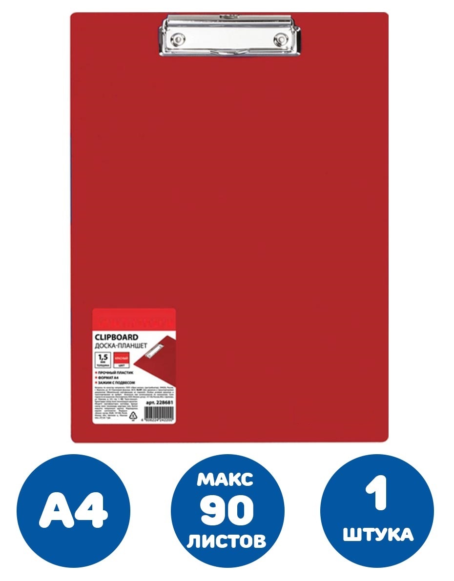 Доска-планшет "Contract" сверхпрочная с прижимом А4 (313х225 мм), пластик, 1,5 мм, КРАСНАЯ (1 штука)