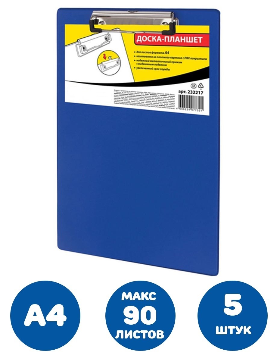 Доска-планшет "NUMBER ONE" с прижимом А4 (228х318 мм), картон/ПВХ, СИНЯЯ (5 штук)
