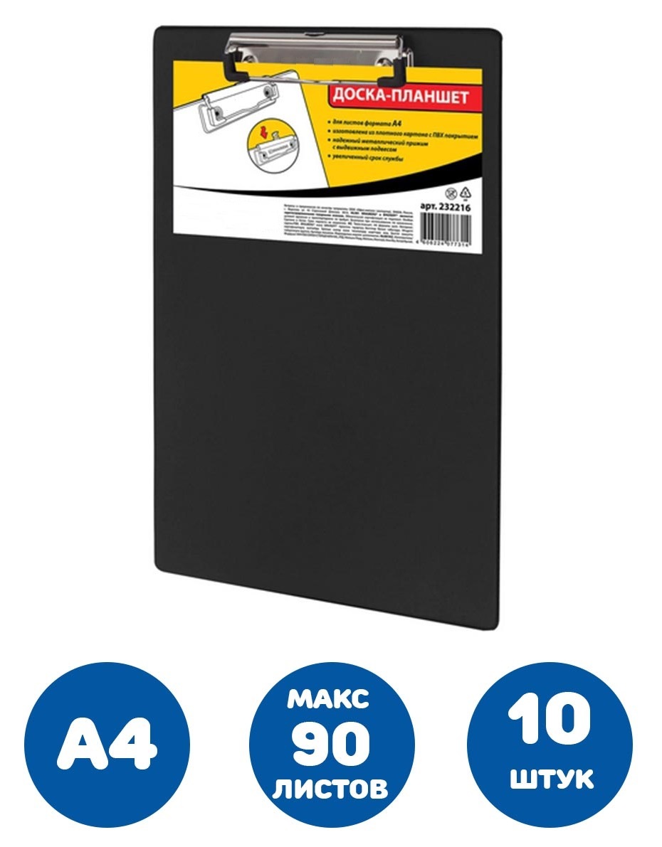 Доска-планшет "NUMBER ONE" с прижимом А4 (228х318 мм), картон/ПВХ, ЧЕРНАЯ (10 штук)