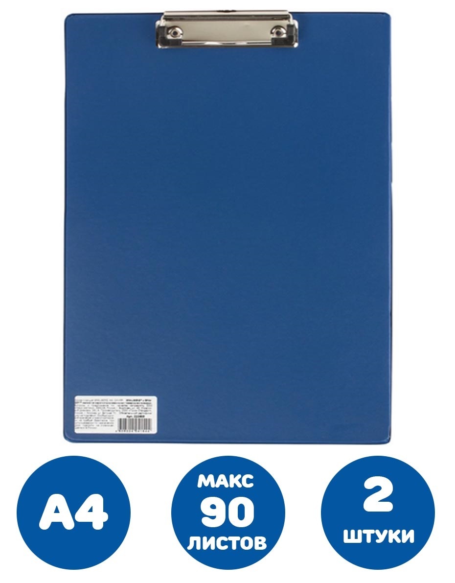Доска-планшет "Comfort" с прижимом А4 (230х350 мм), картон/ПВХ, РОССИЯ, СИНЯЯ (2 штуки)