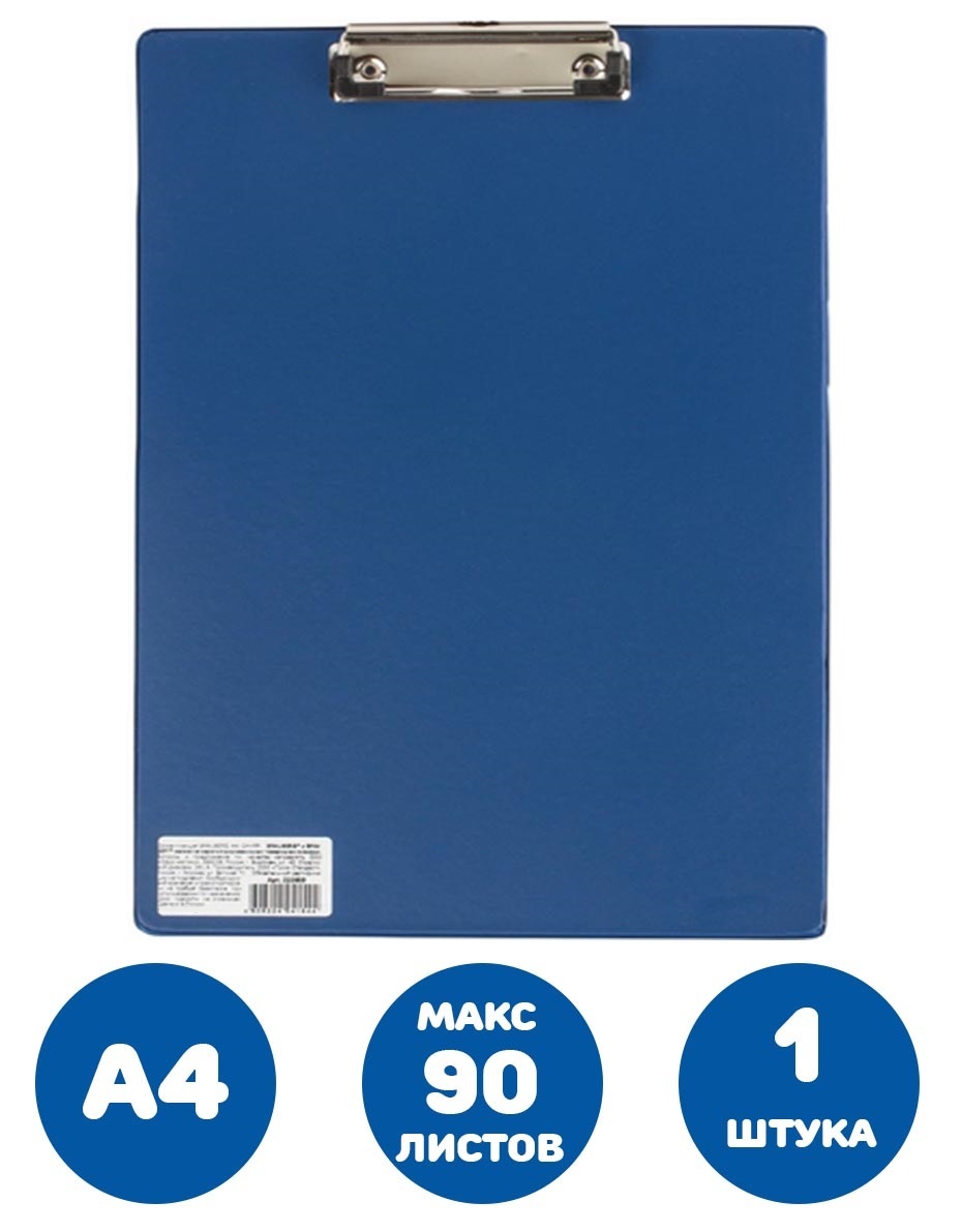 Доска-планшет "Comfort" с прижимом А4 (230х350 мм), картон/ПВХ, РОССИЯ, СИНЯЯ (1 штука)