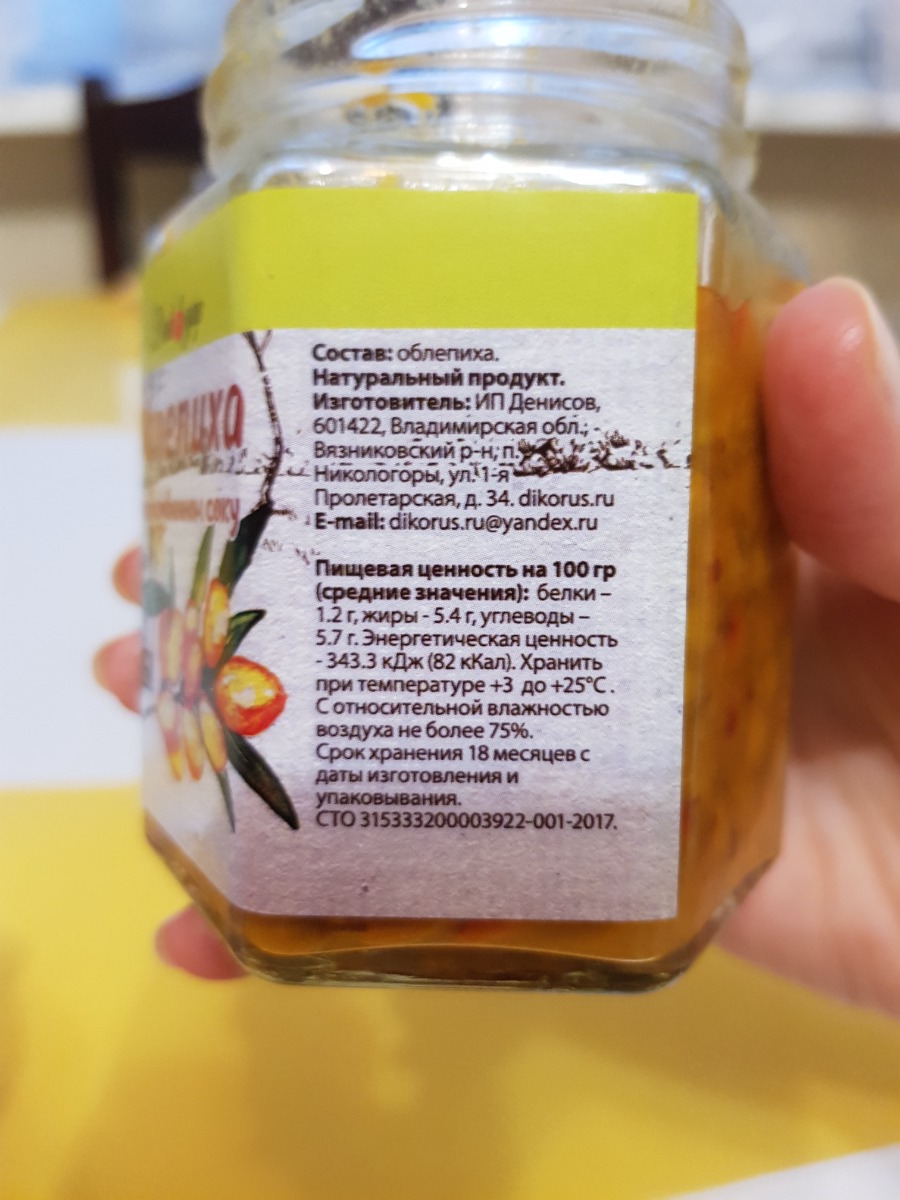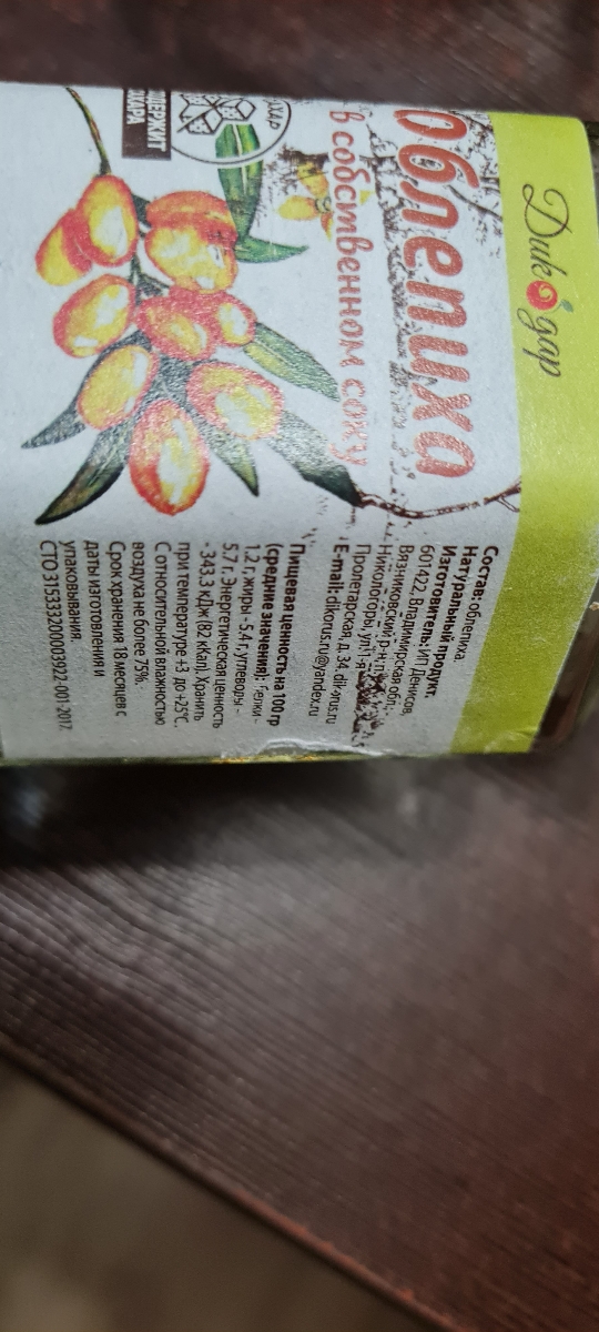 Облепиха в собственном соку (без сахара) 200 мл - 250 гр