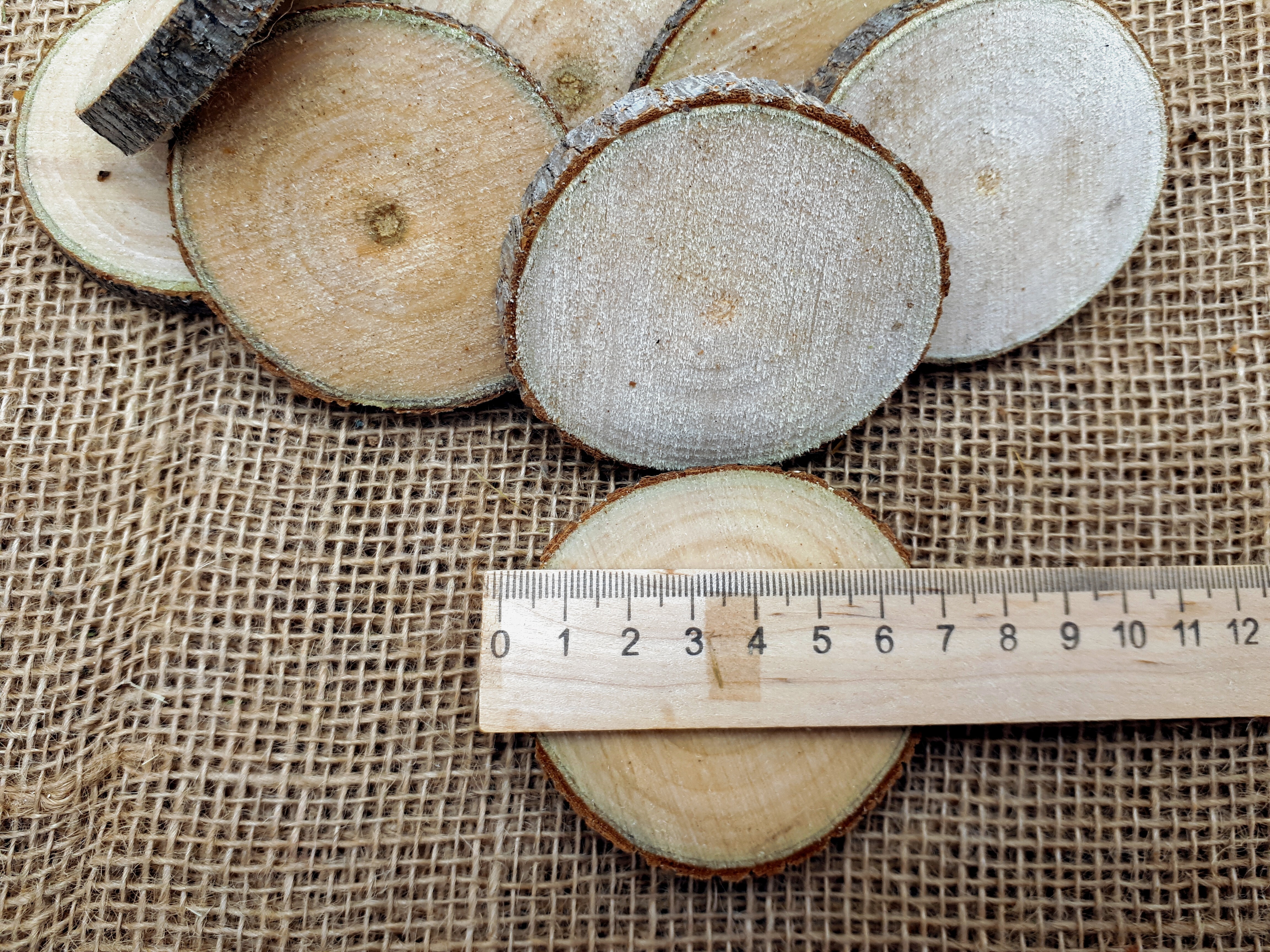 Деревянные заготовки Срез ольхи 11-12см 6шт толщина 2см не шлифованная.