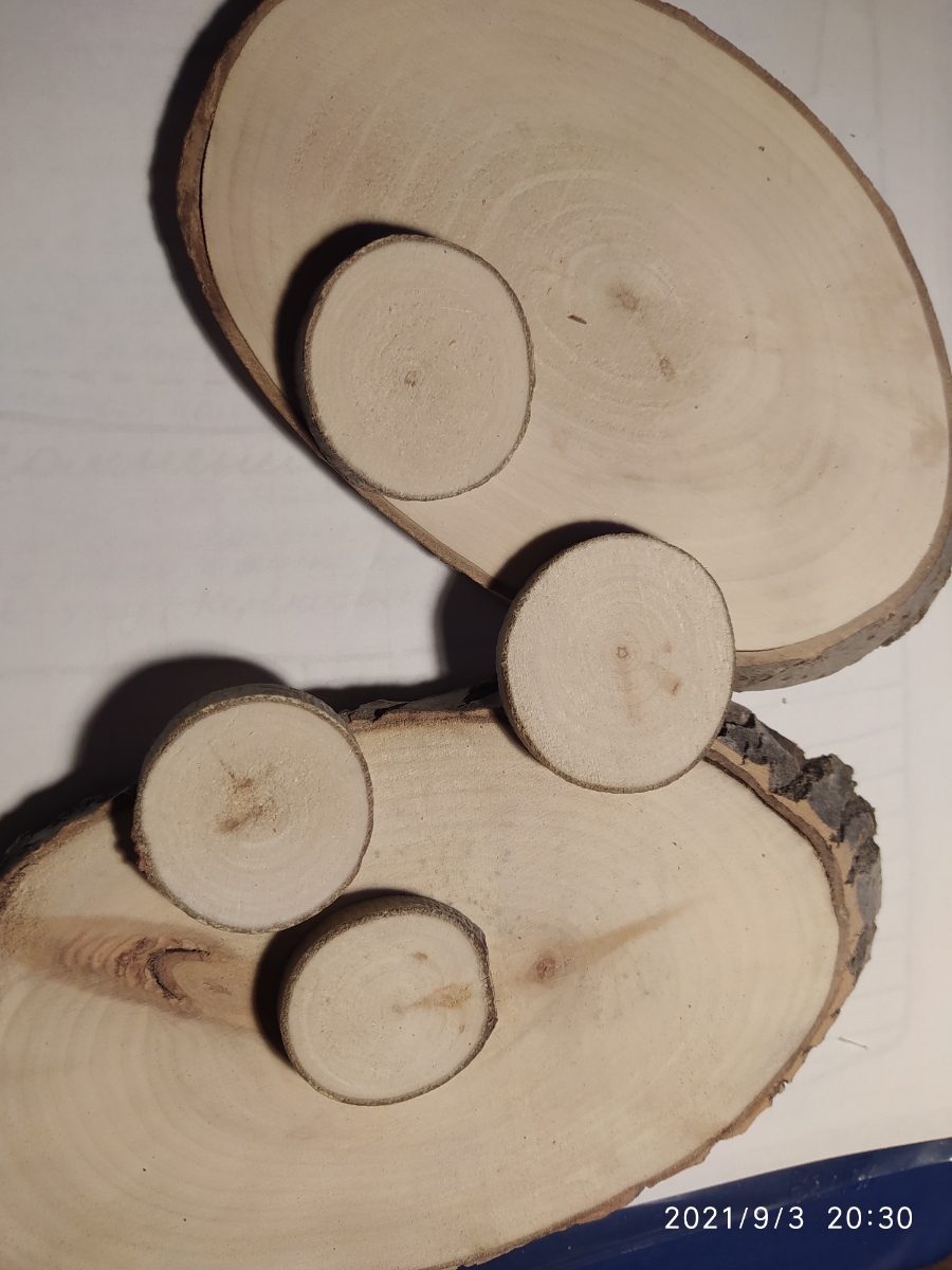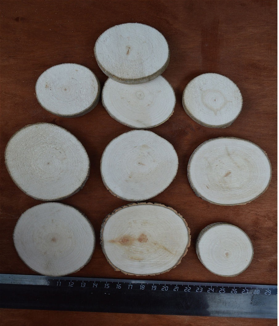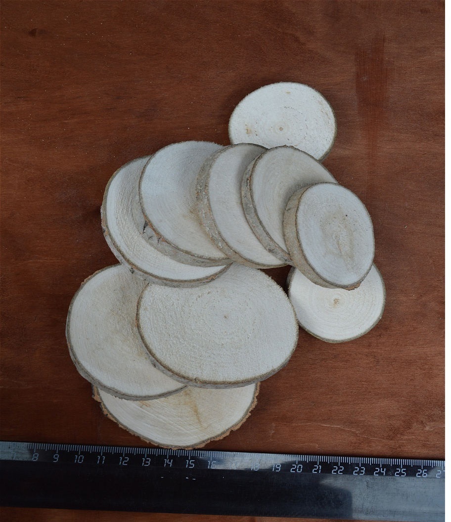 Деревянные заготовки.Набор 15 шт.срез ствола осины рр.5-6,5см. Т 0,7см. "Осиновые фишки" ШЛИФОВАННЫЕ