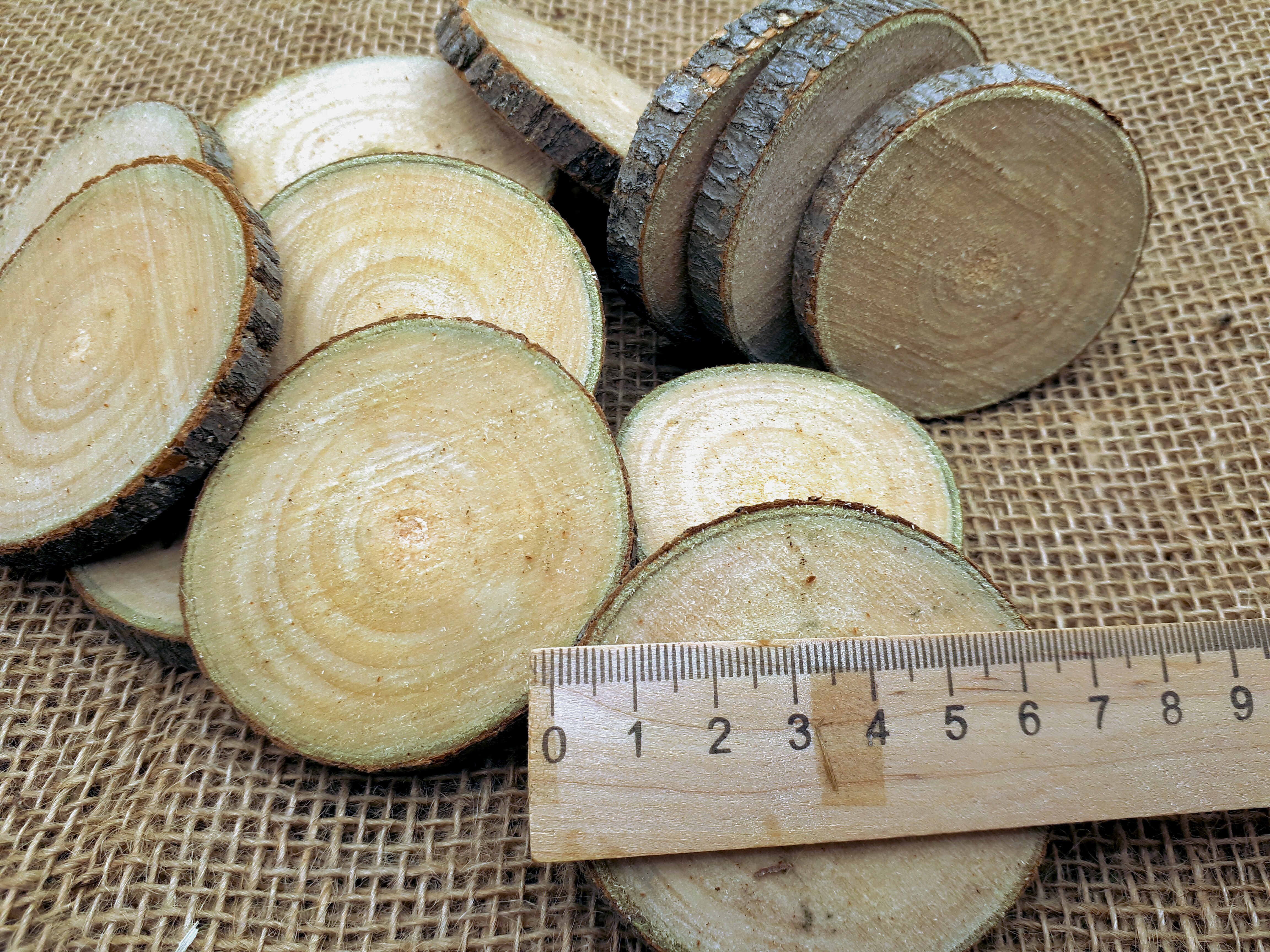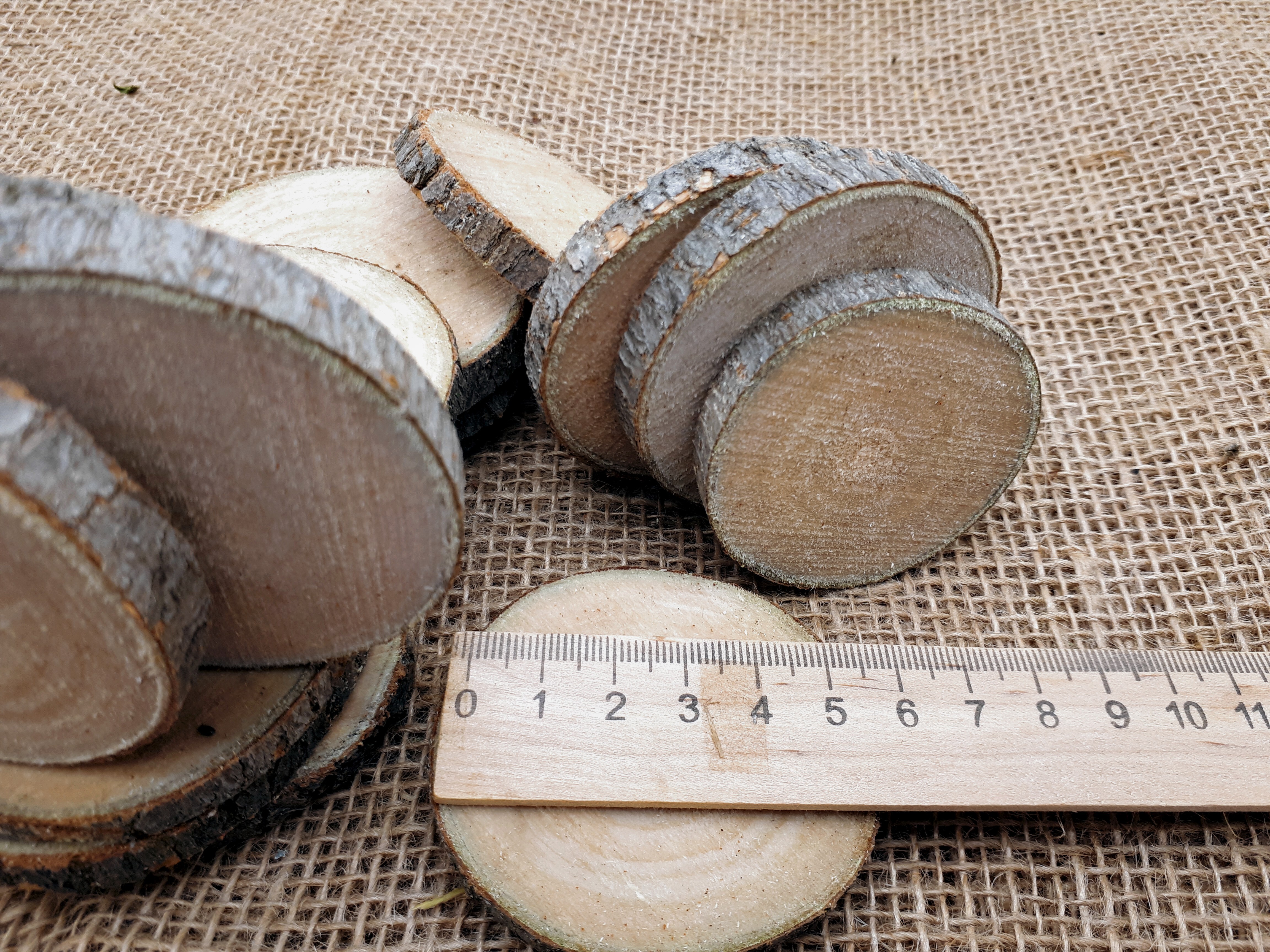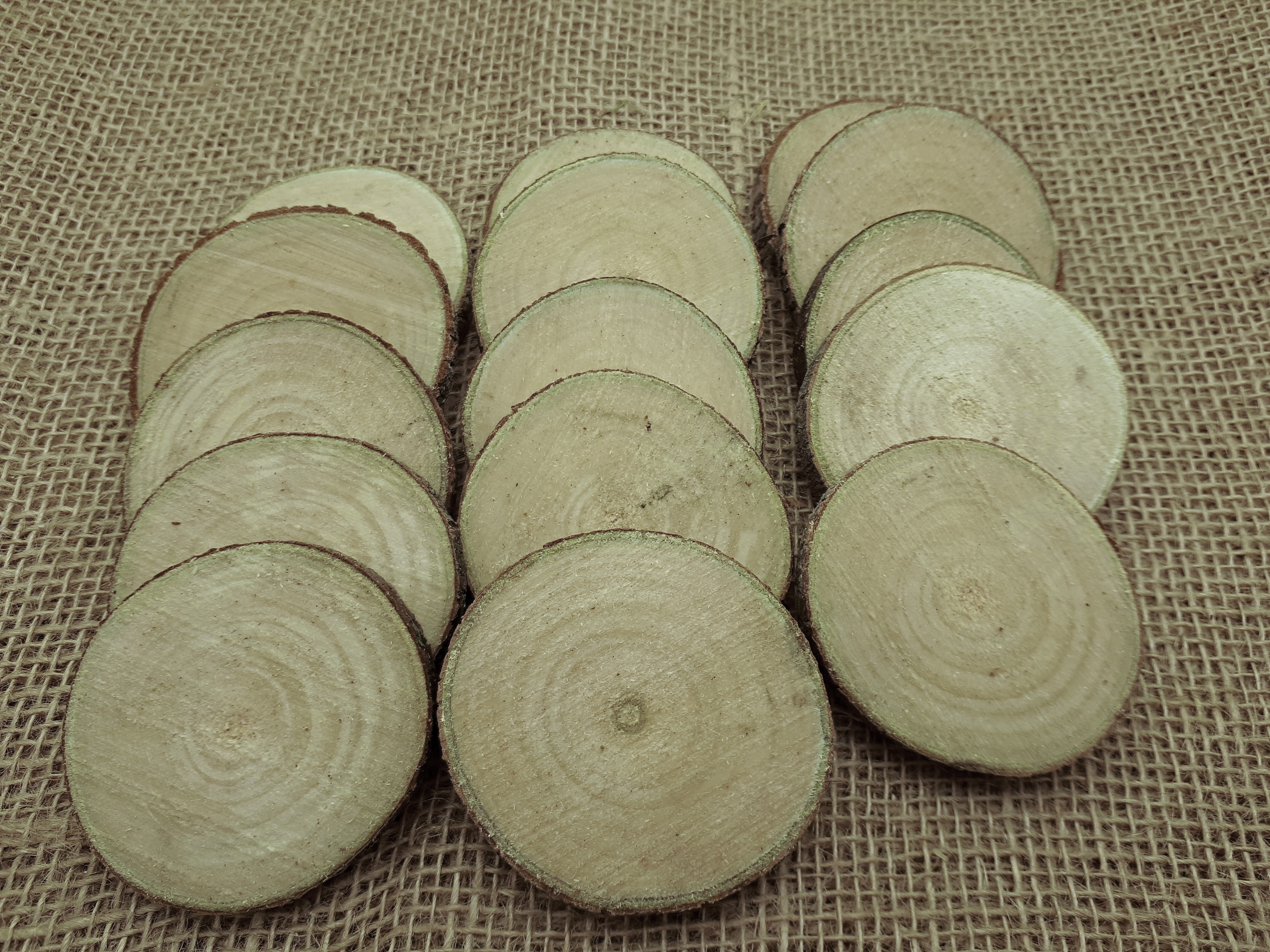 Деревянные заготовки.Набор 15 шт.срез ствола осины рр.5-6,5см. Т 0,7см. "Осиновые фишки" ШЛИФОВАННЫЕ