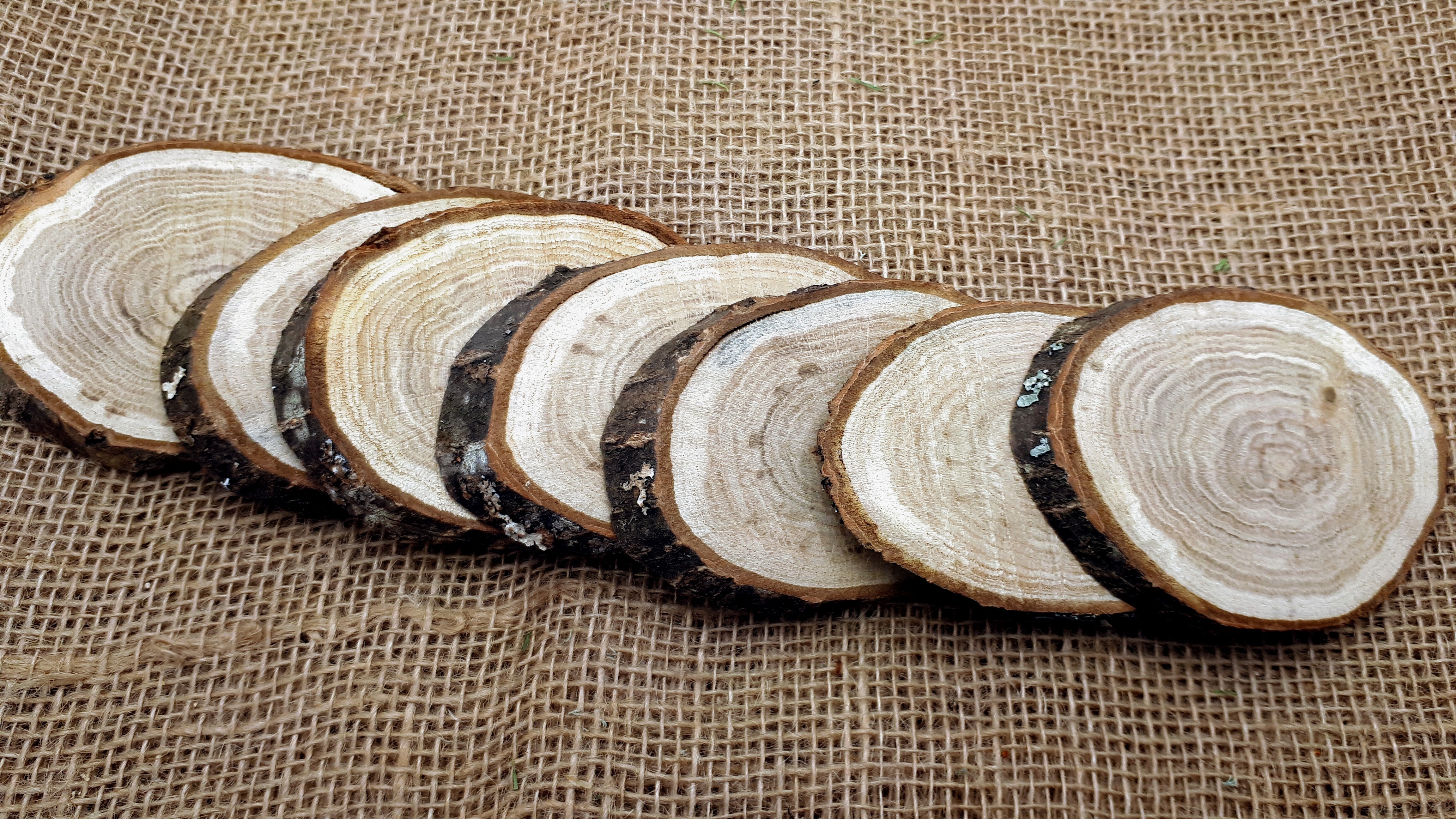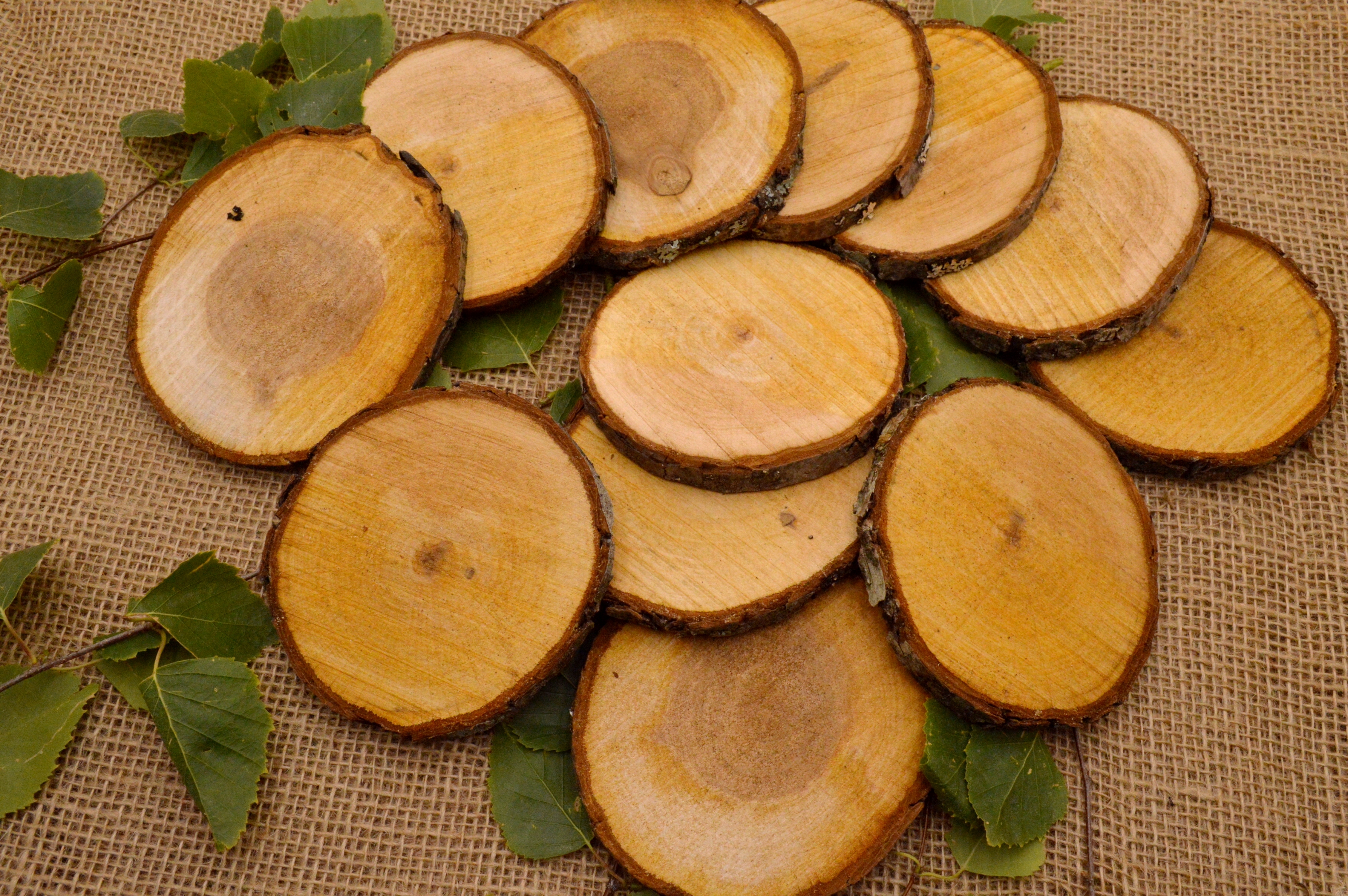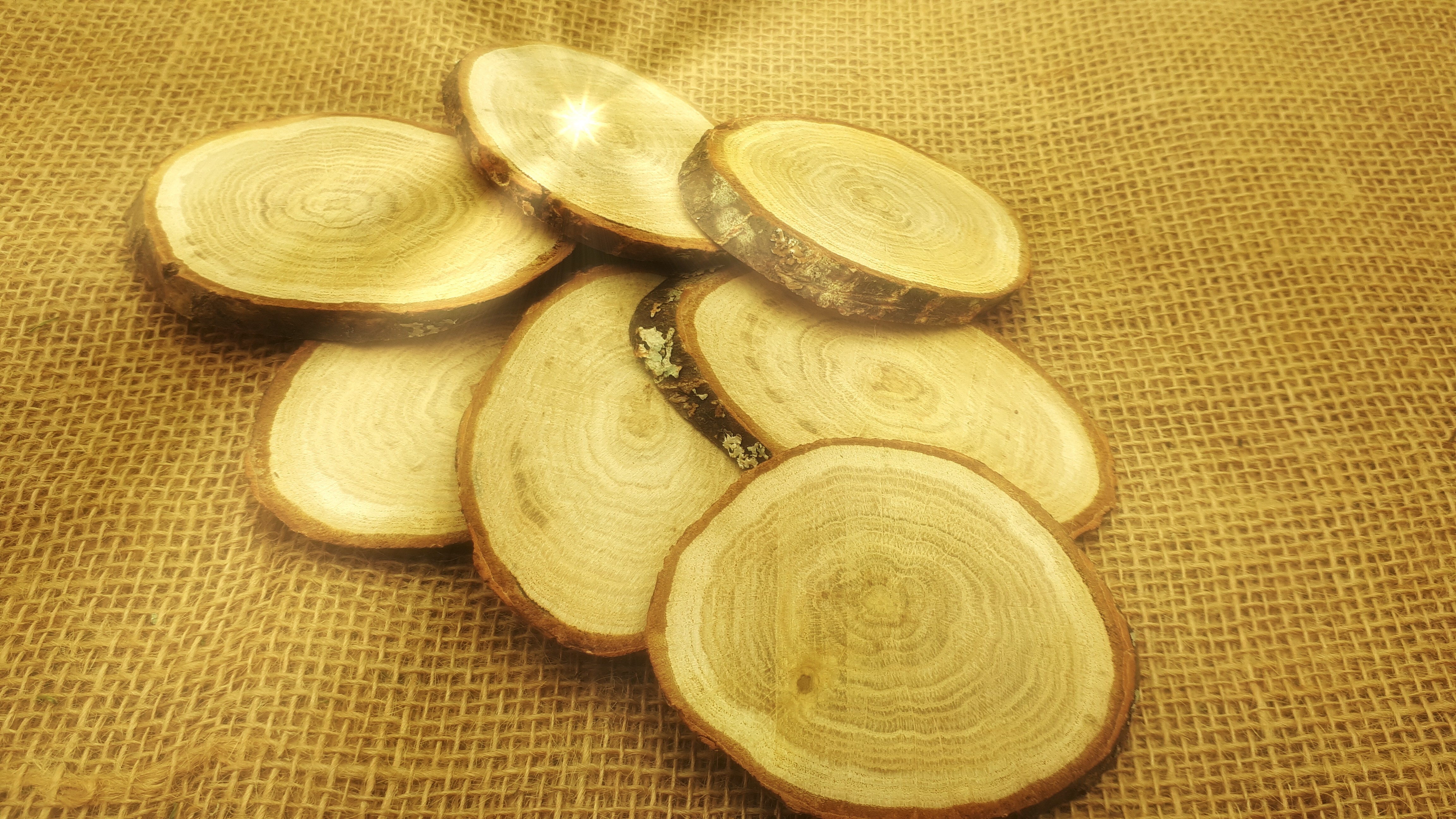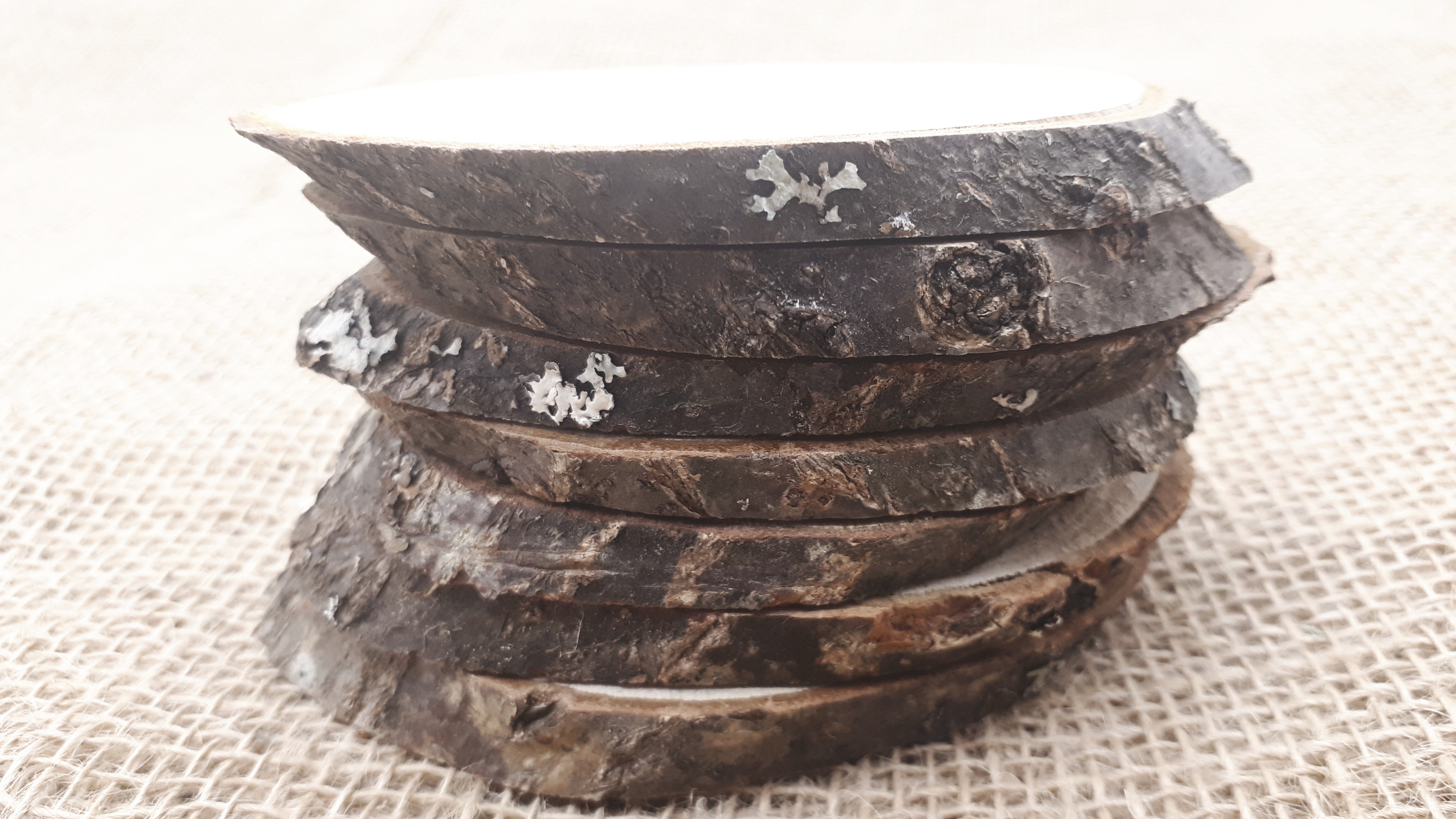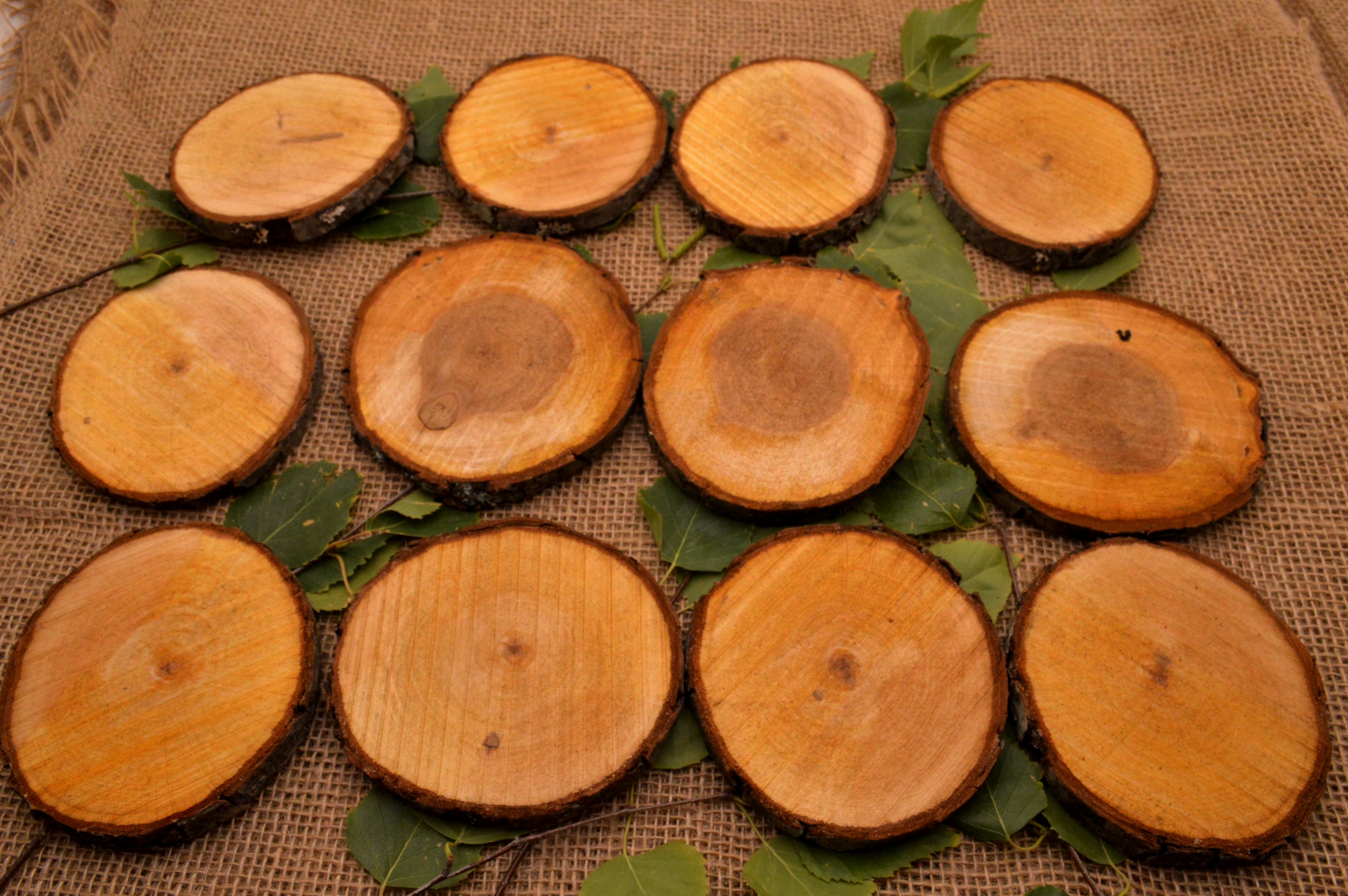 Деревянные заготовки. Набор 15шт. срез ствола осины 3-4,5 см Т 0,7см. "Осиновые" НЕ ШЛИФОВАННЫЕ.