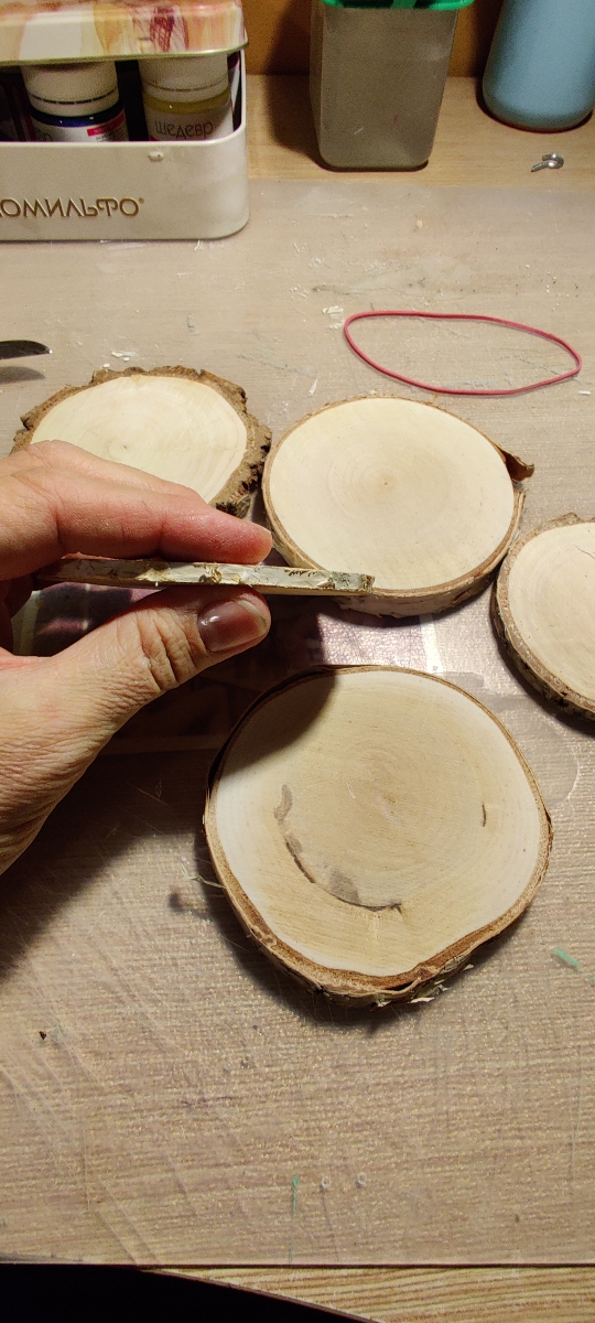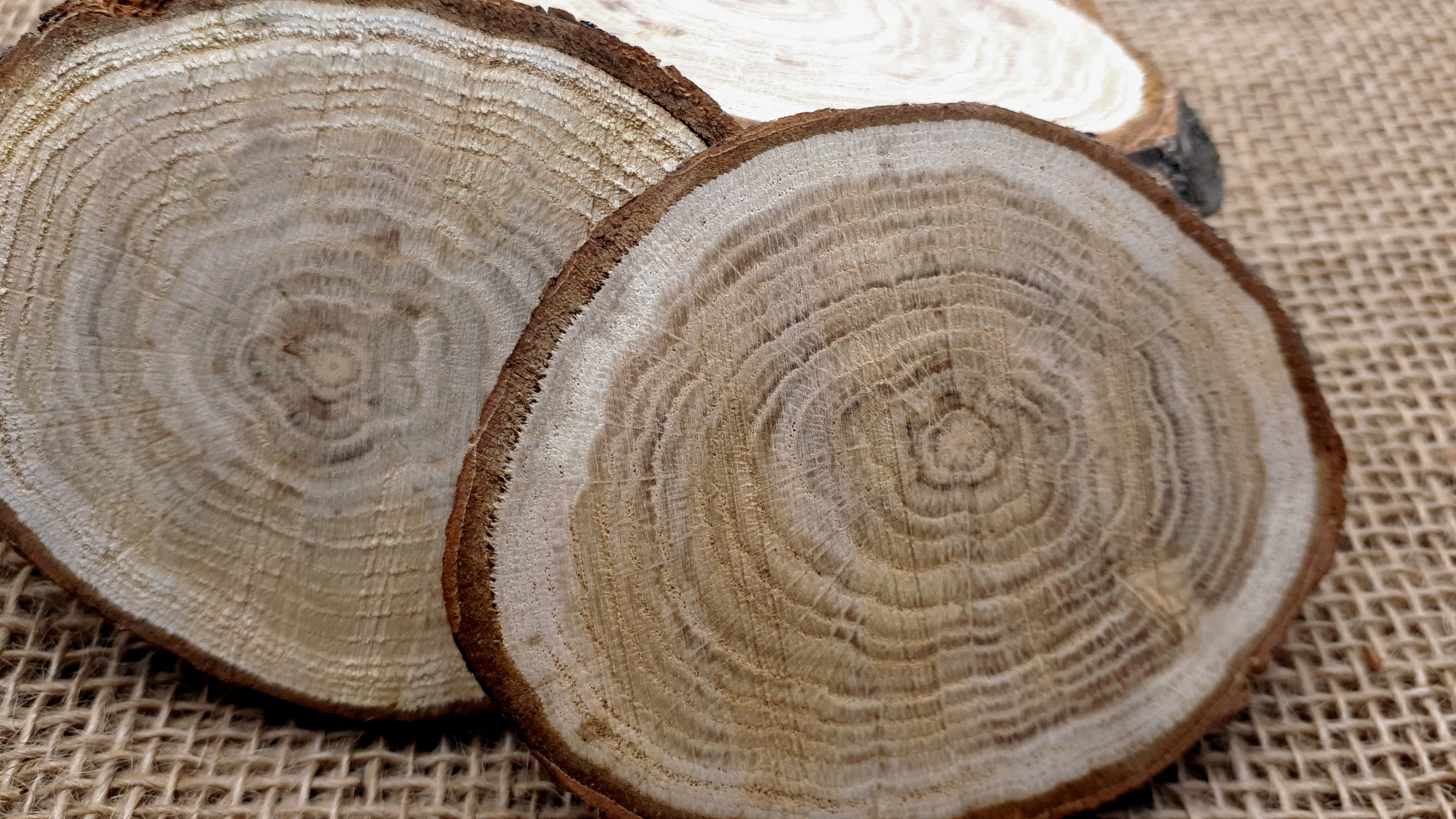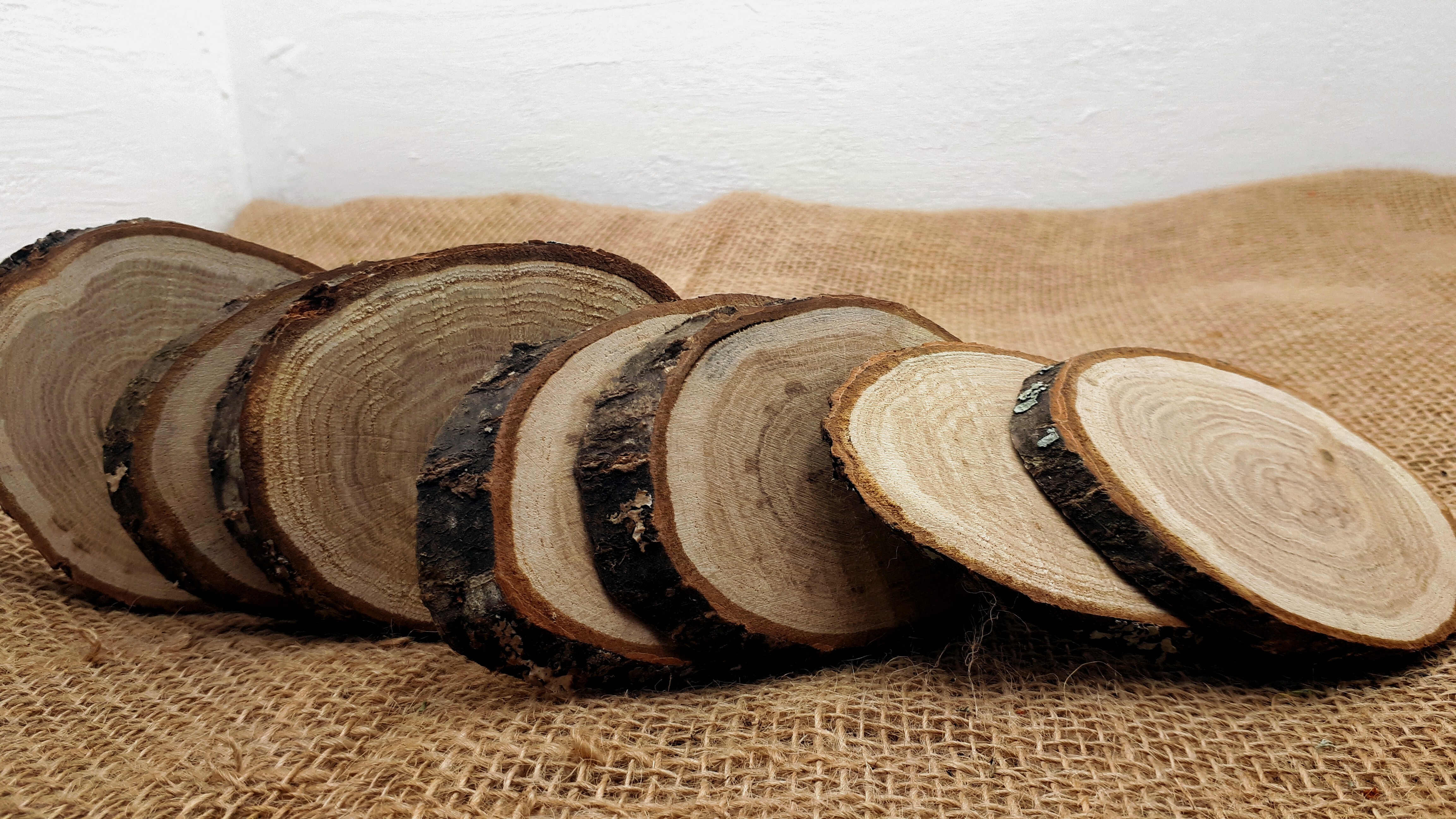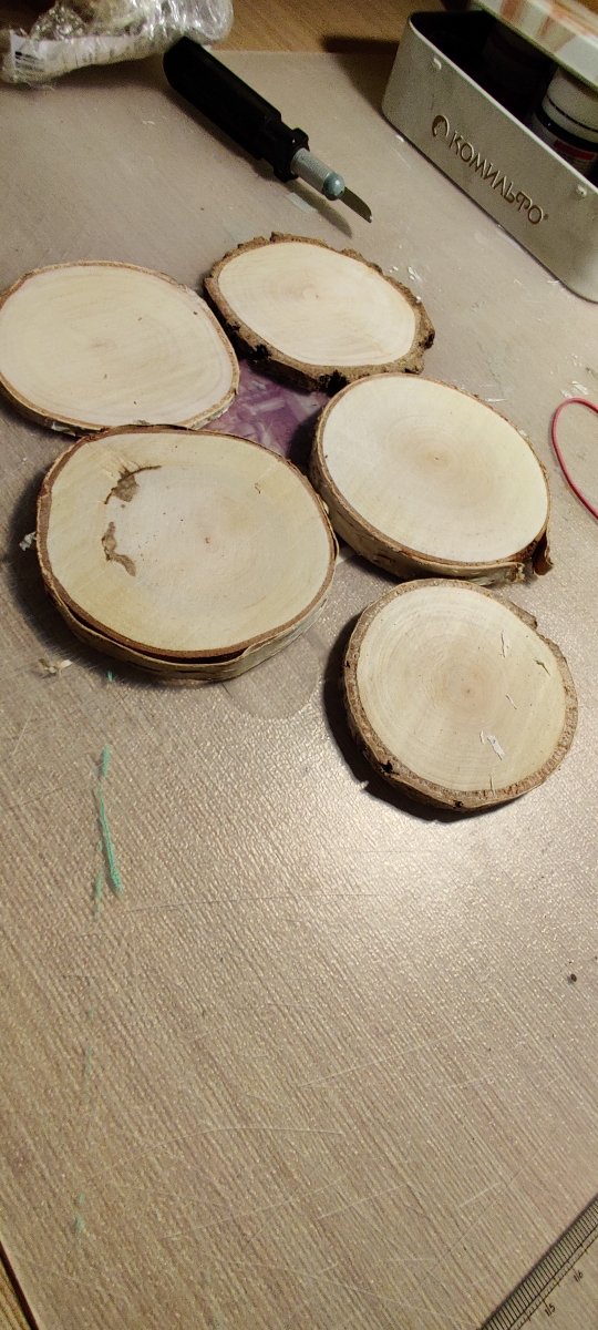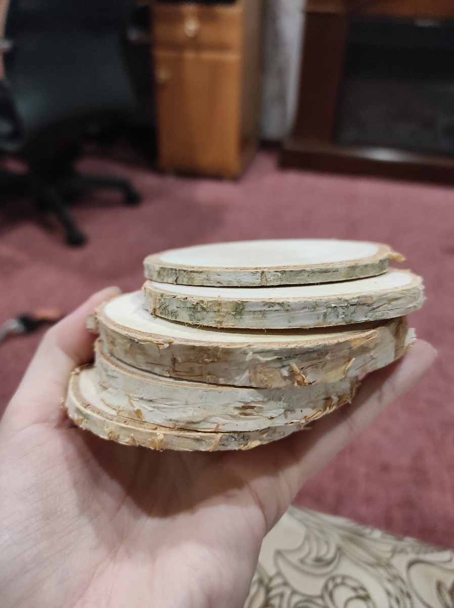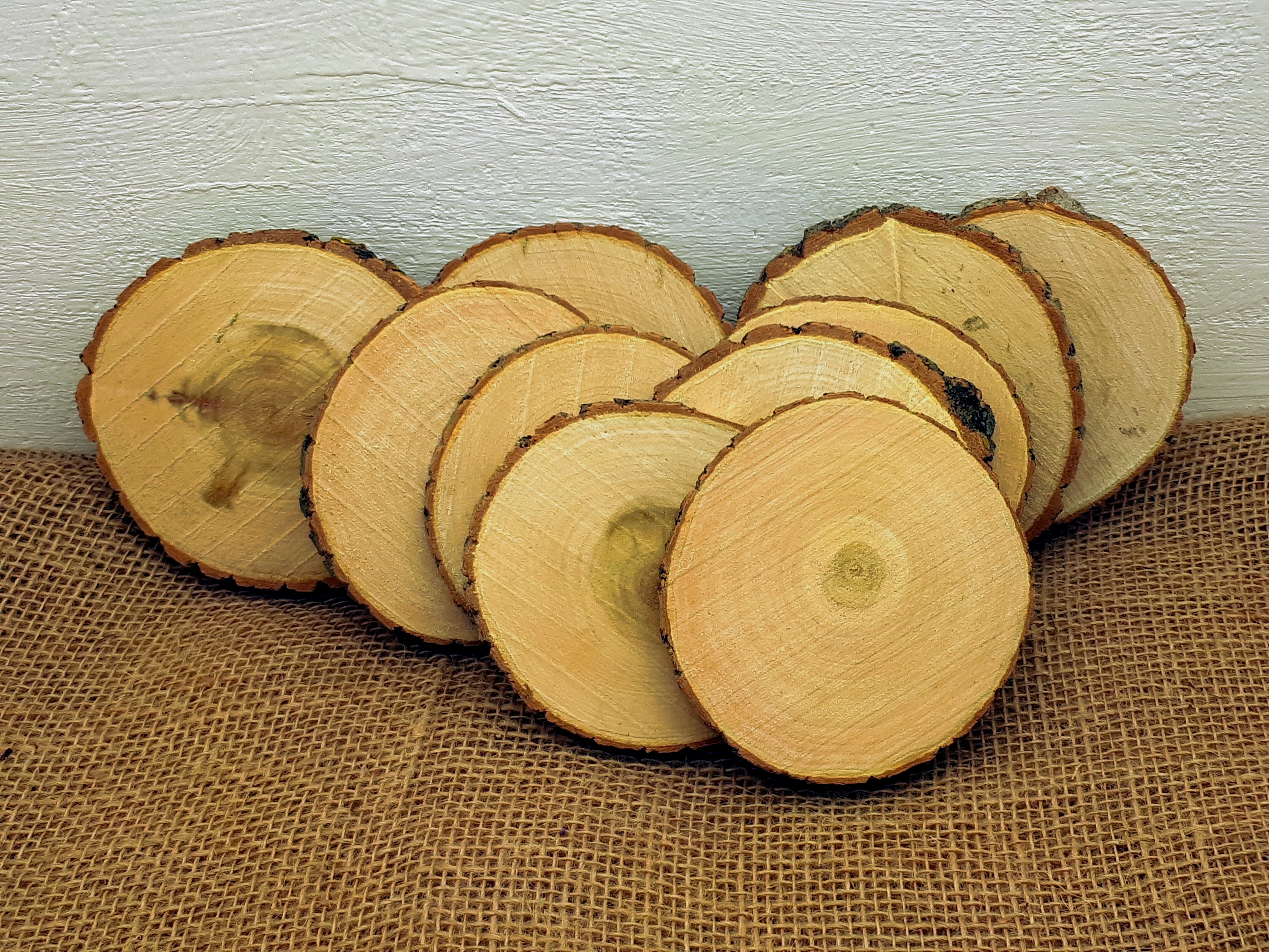 Деревянные заготовки. Набор 15шт. срез ствола осины 3-4,5 см Т 0,7см. "Осиновые" НЕ ШЛИФОВАННЫЕ.