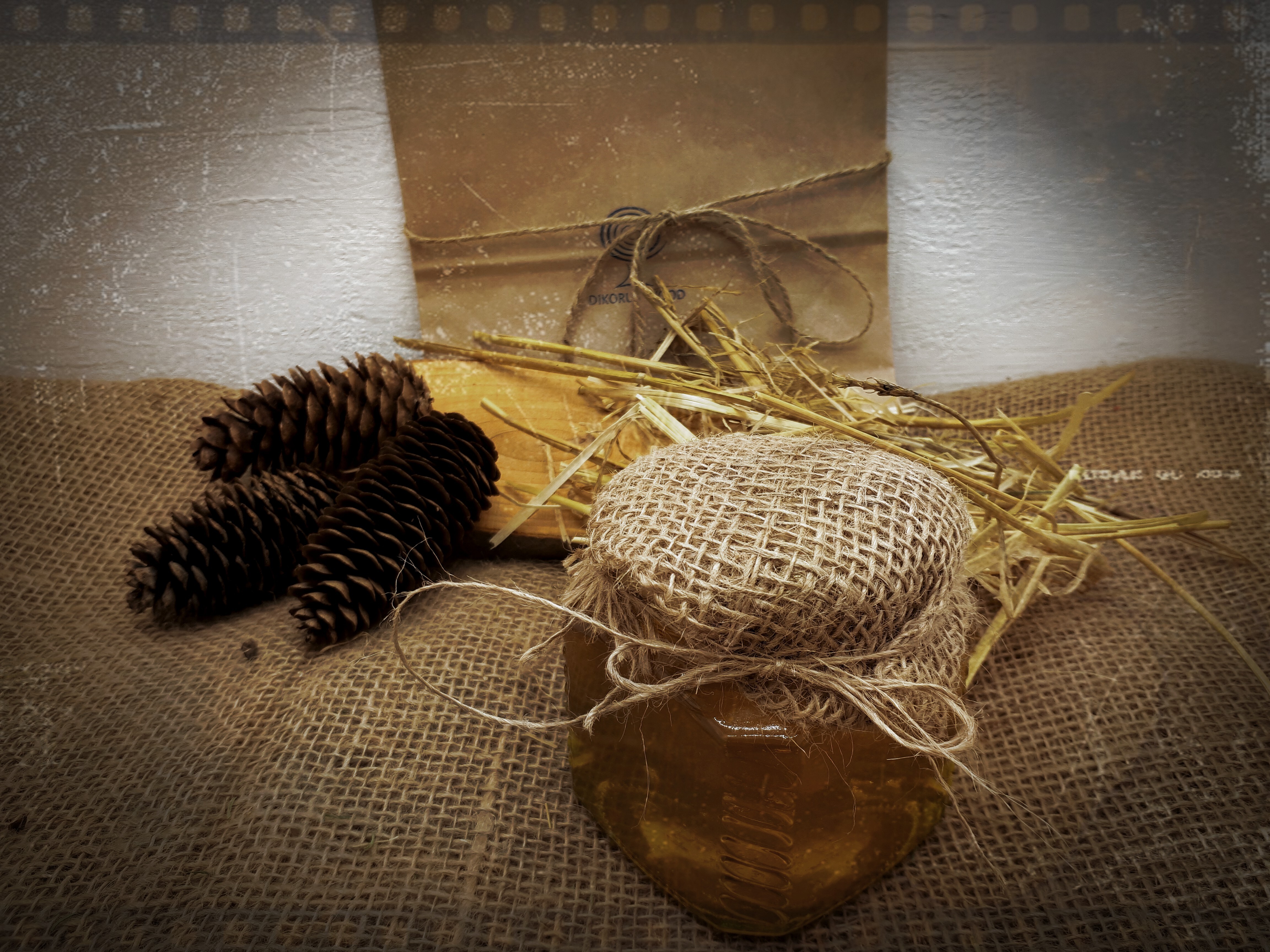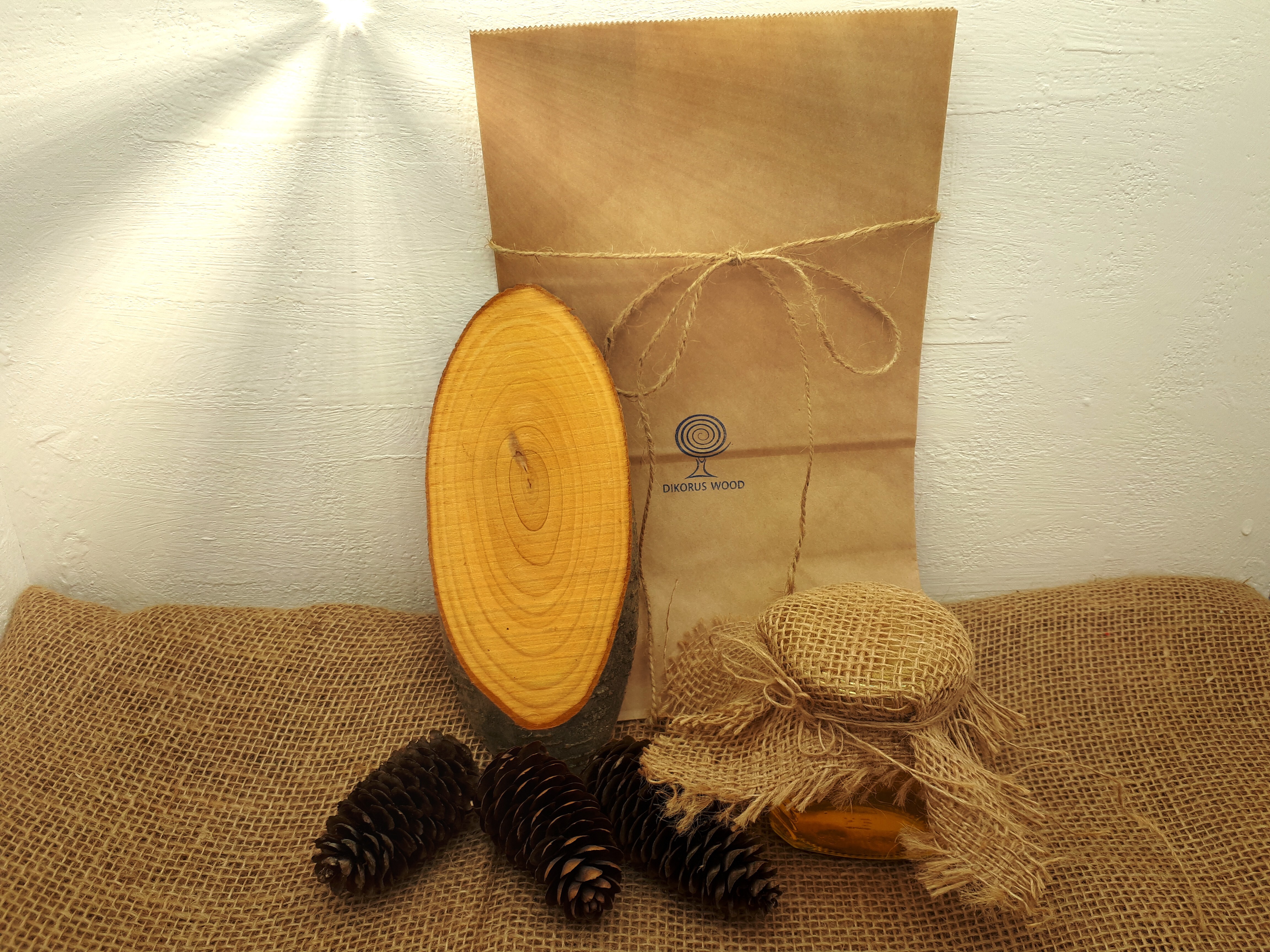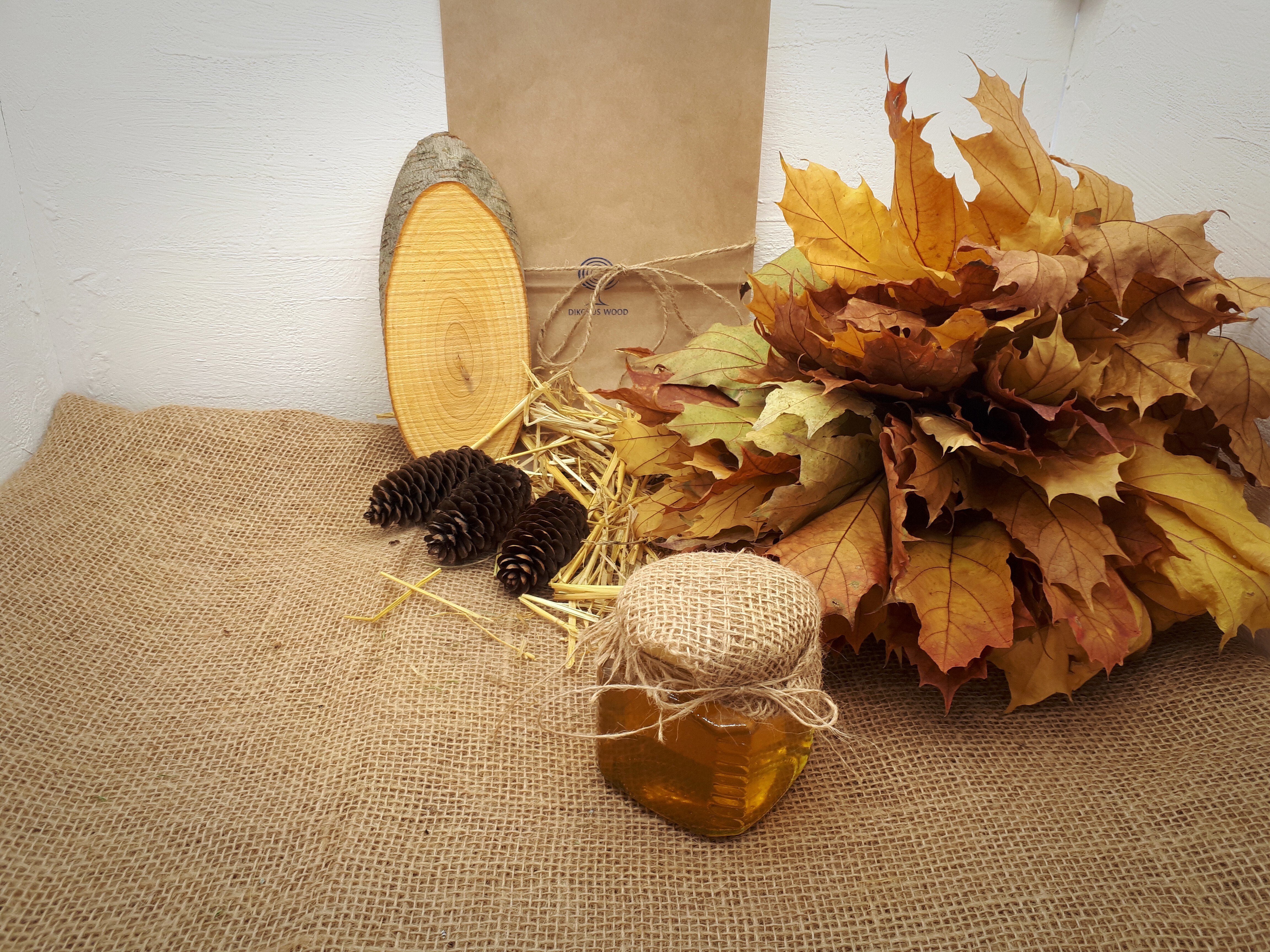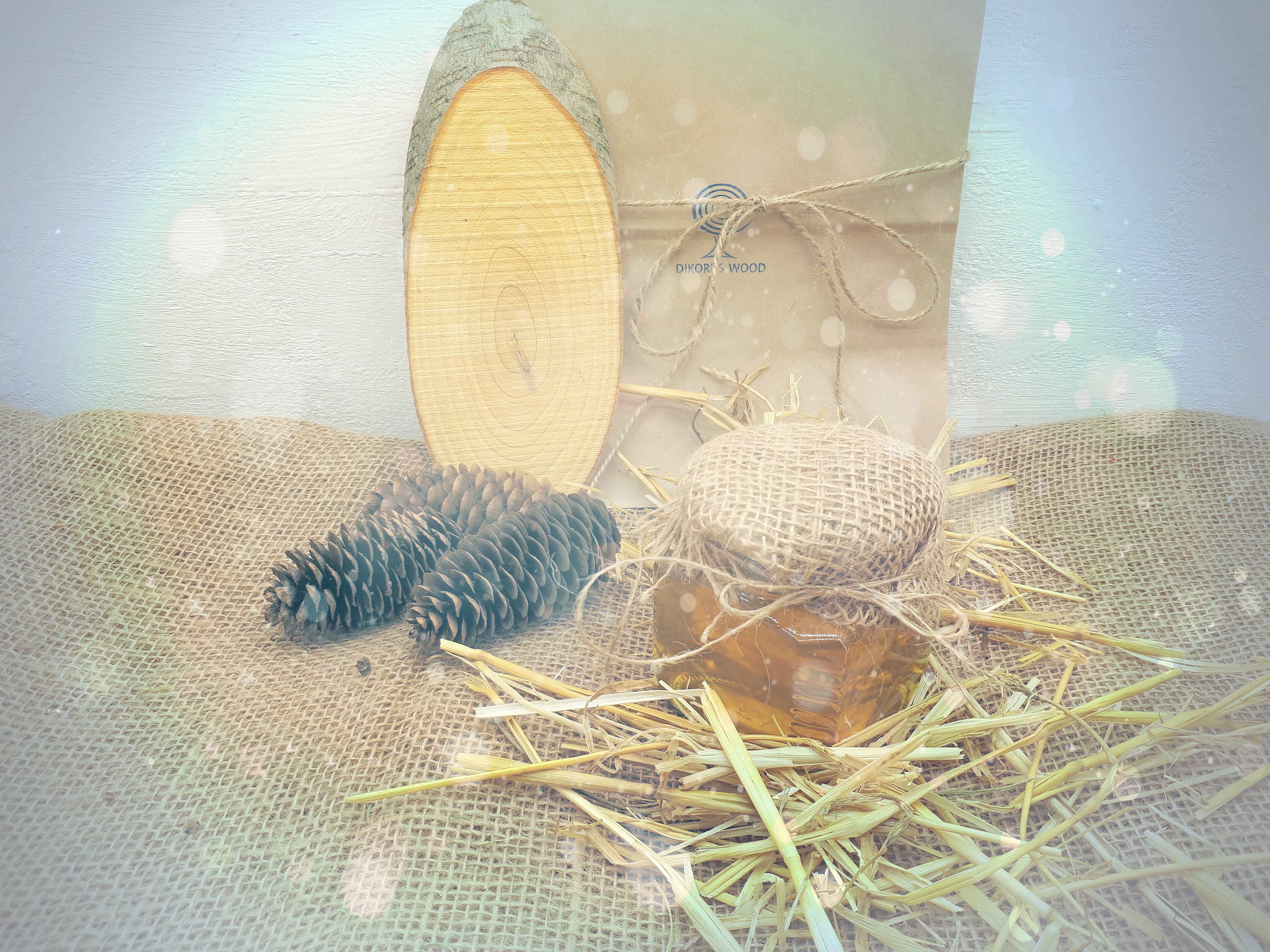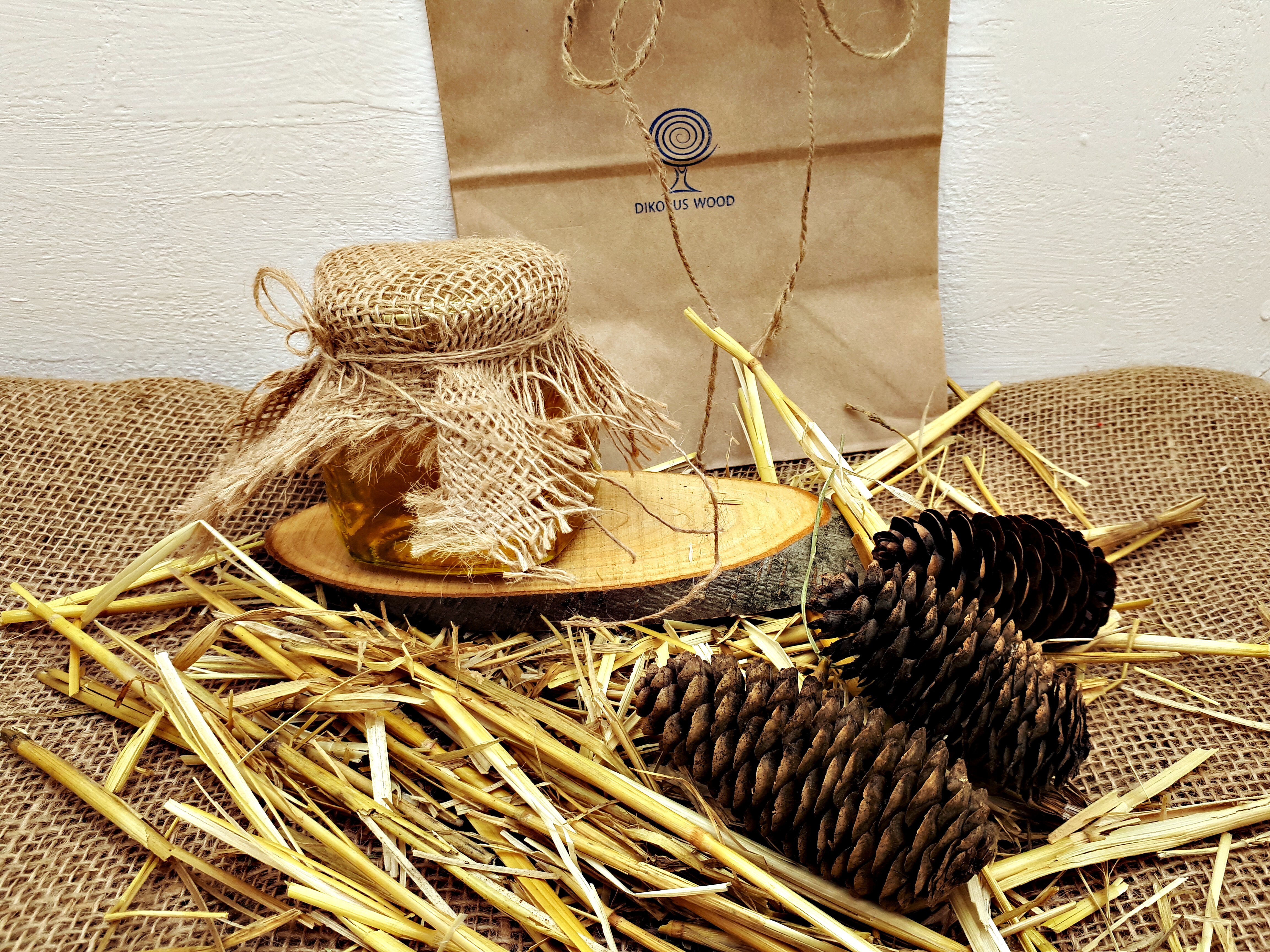 Набор для творчества "Медовый сюрприз" мед 320г, спил ольхи150х80х20мм, 3 еловые шишки.