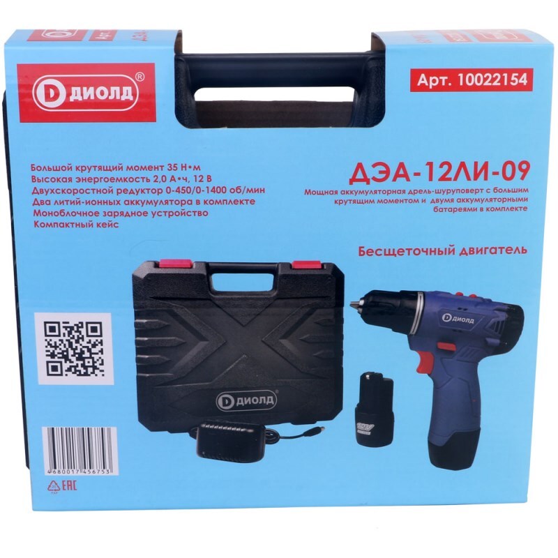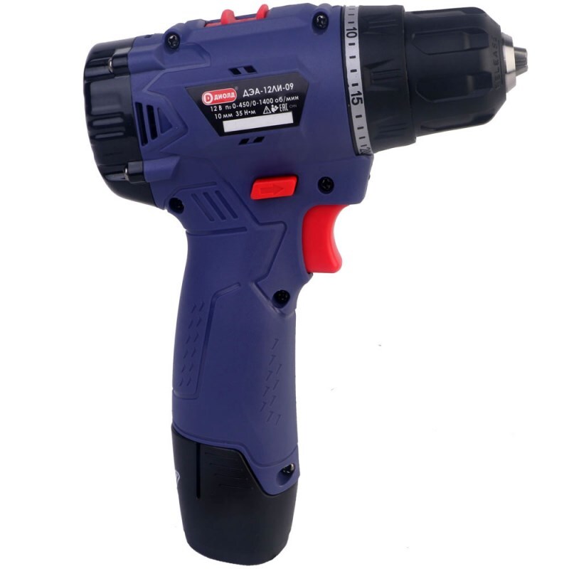 Шуруповерт Диолд ДЭА-12 ЛИ-09, От аккумулятора, 12 В, 35 Нм, 2 АКБ