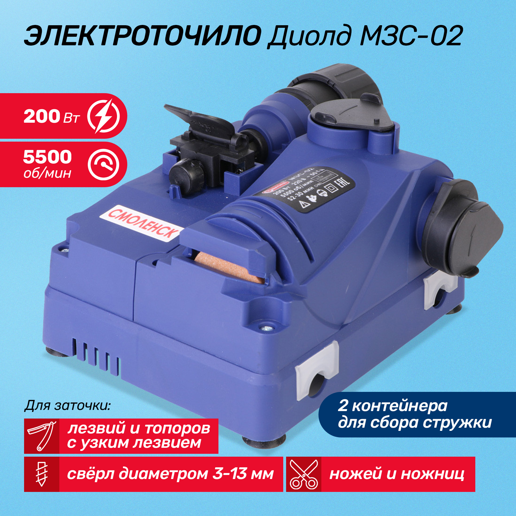 Станок для заточки сверл и ножей ДИОЛД МЗС-02/ 200Вт/ 5500 об/мин/ 2 контейнера для сбора стружки