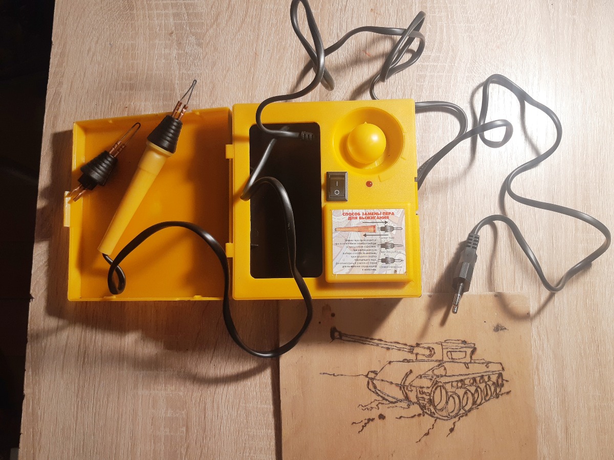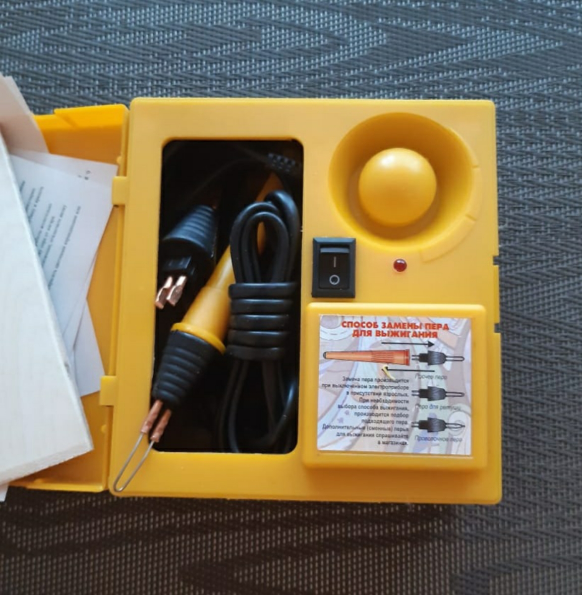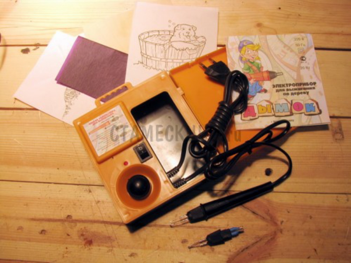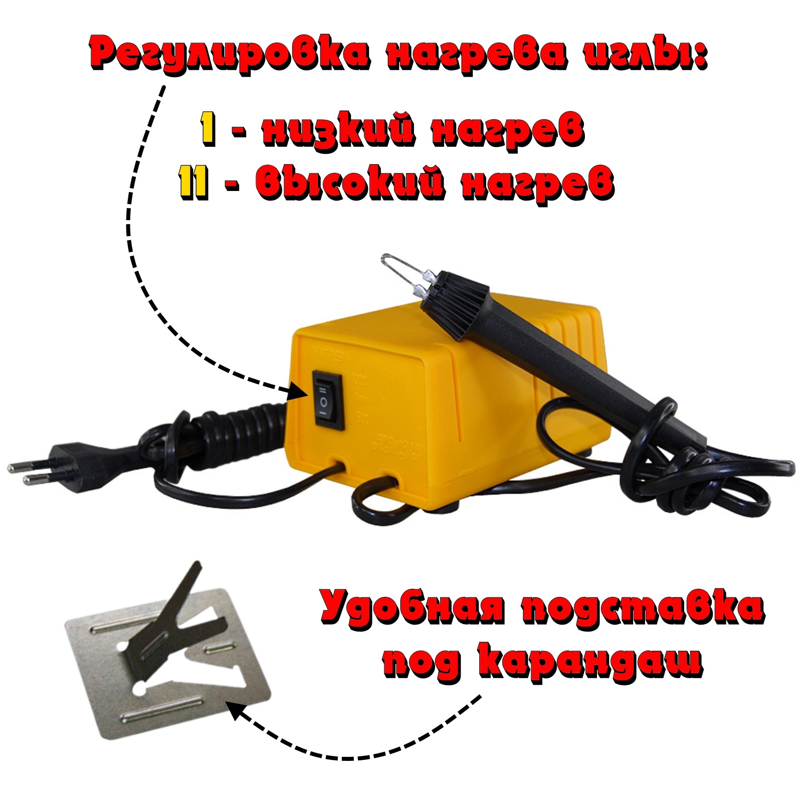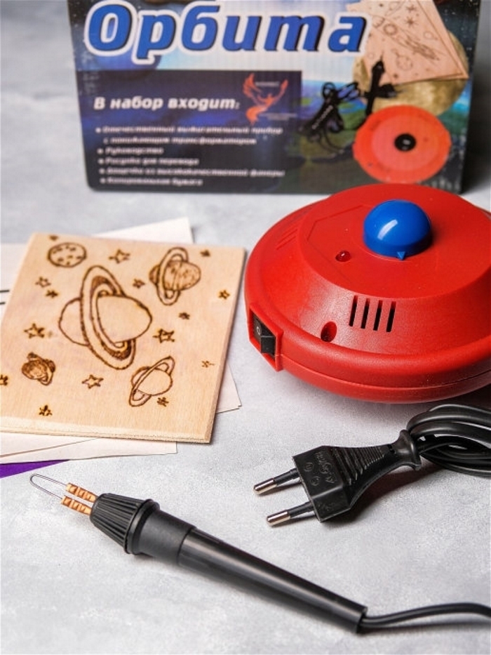 Прибор для выжигания по дереву "Орбита" + дощечка, переводная бумага и 3 рисунка в подарок